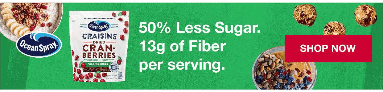 Ocean Spray Craisins, 50% Less Sugar Dried Cranberries, Dried Fruit, 43 oz