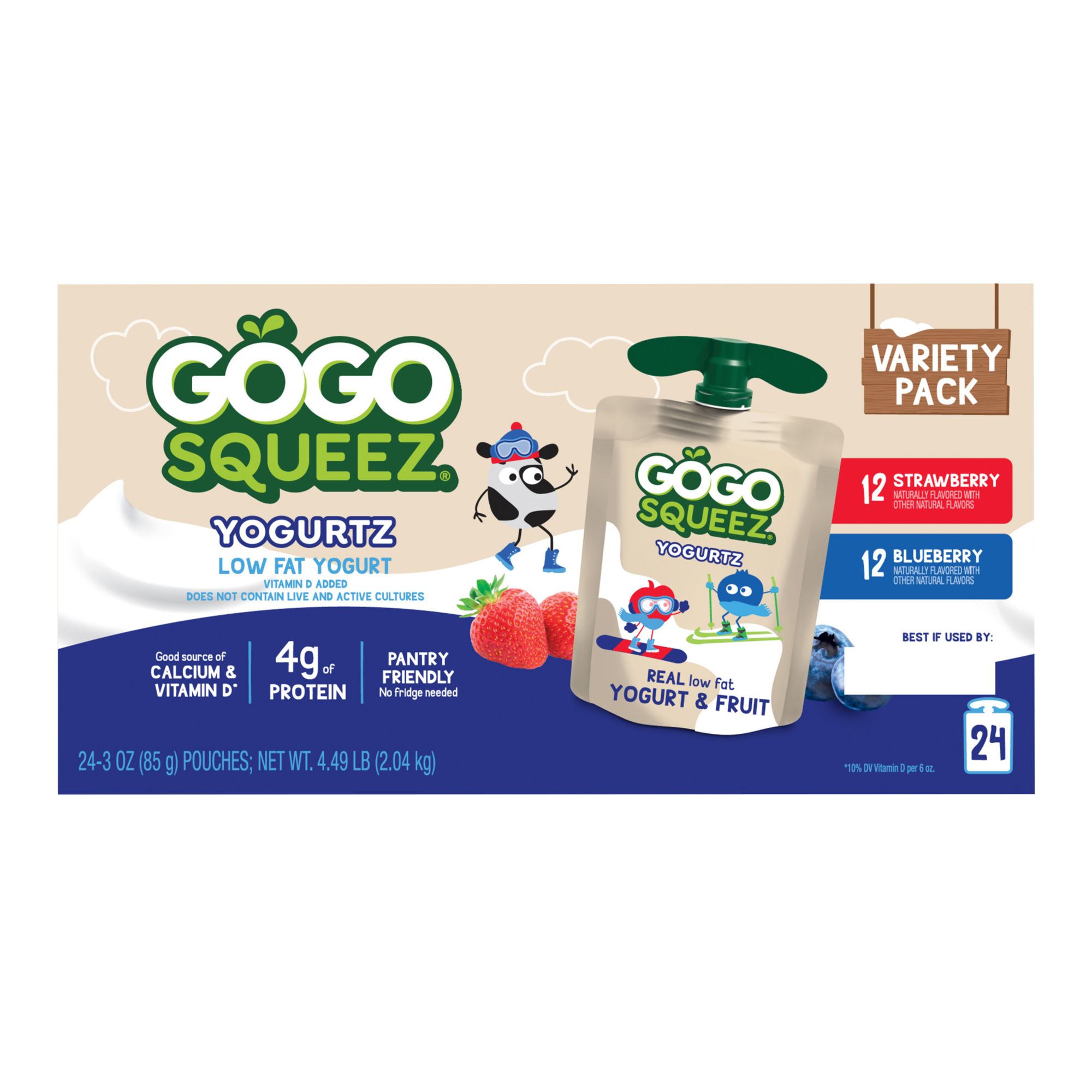 GoGo SqueeZ Yogurtz Variety Pack, Strawberry Banana, Blueberry, 24 pk./3 oz.