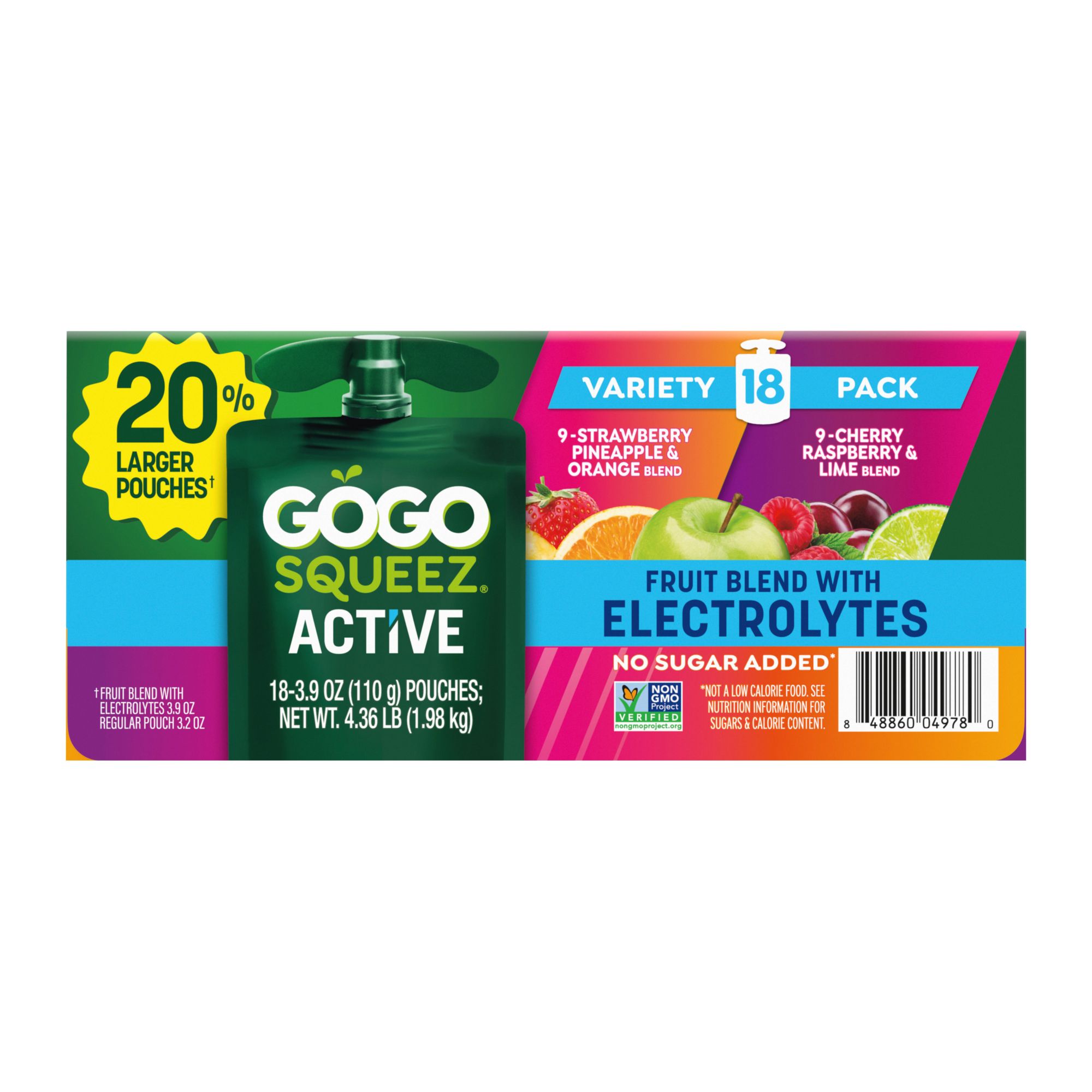 GoGo Squeez Active Fruit Blend, Electrolyte Variety Pack, 18 pk./3.9 oz.