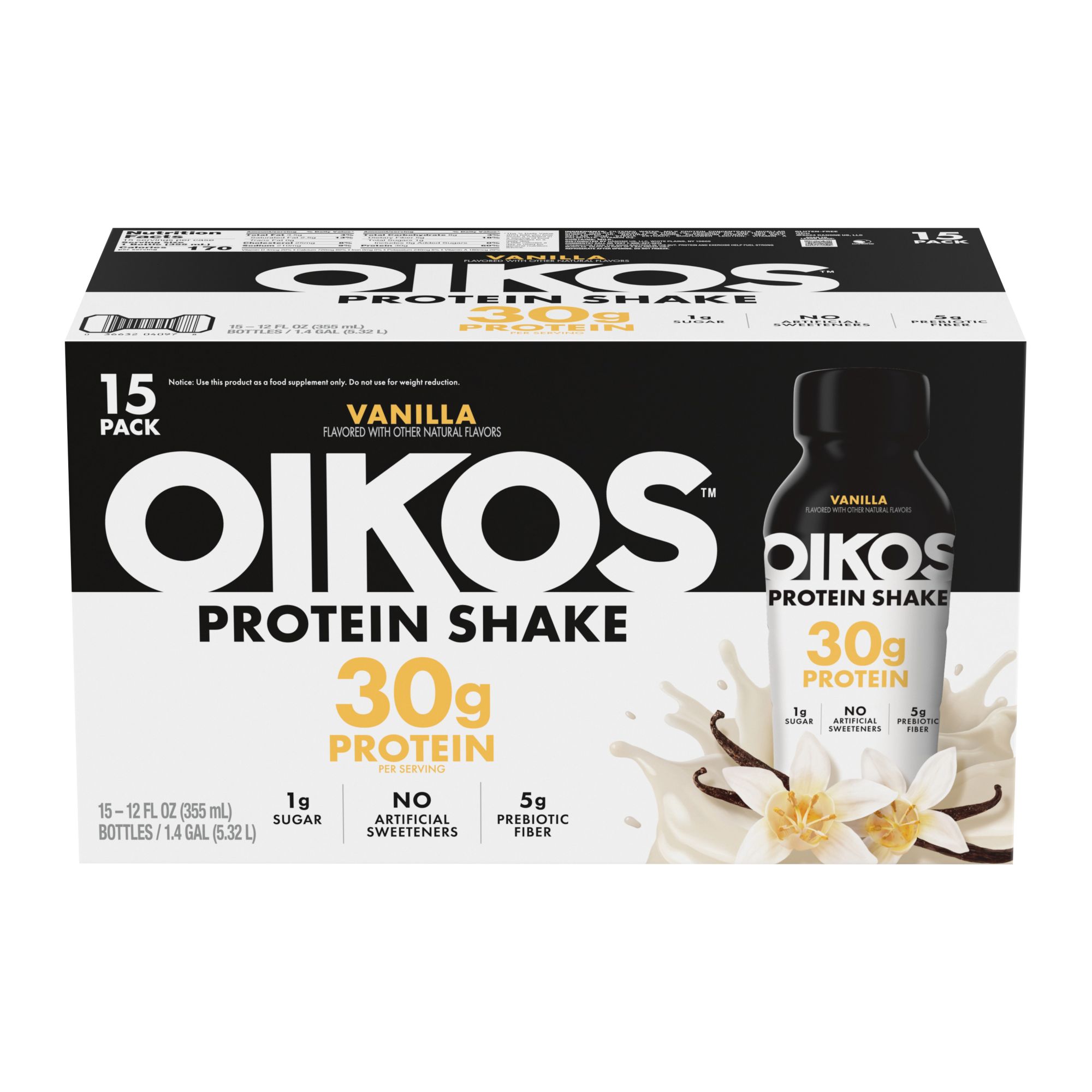 Oikos Protein Shake, Vanilla, 30g Protein, Shelf Stable, Bottles, 15 ct./12 fl. oz.