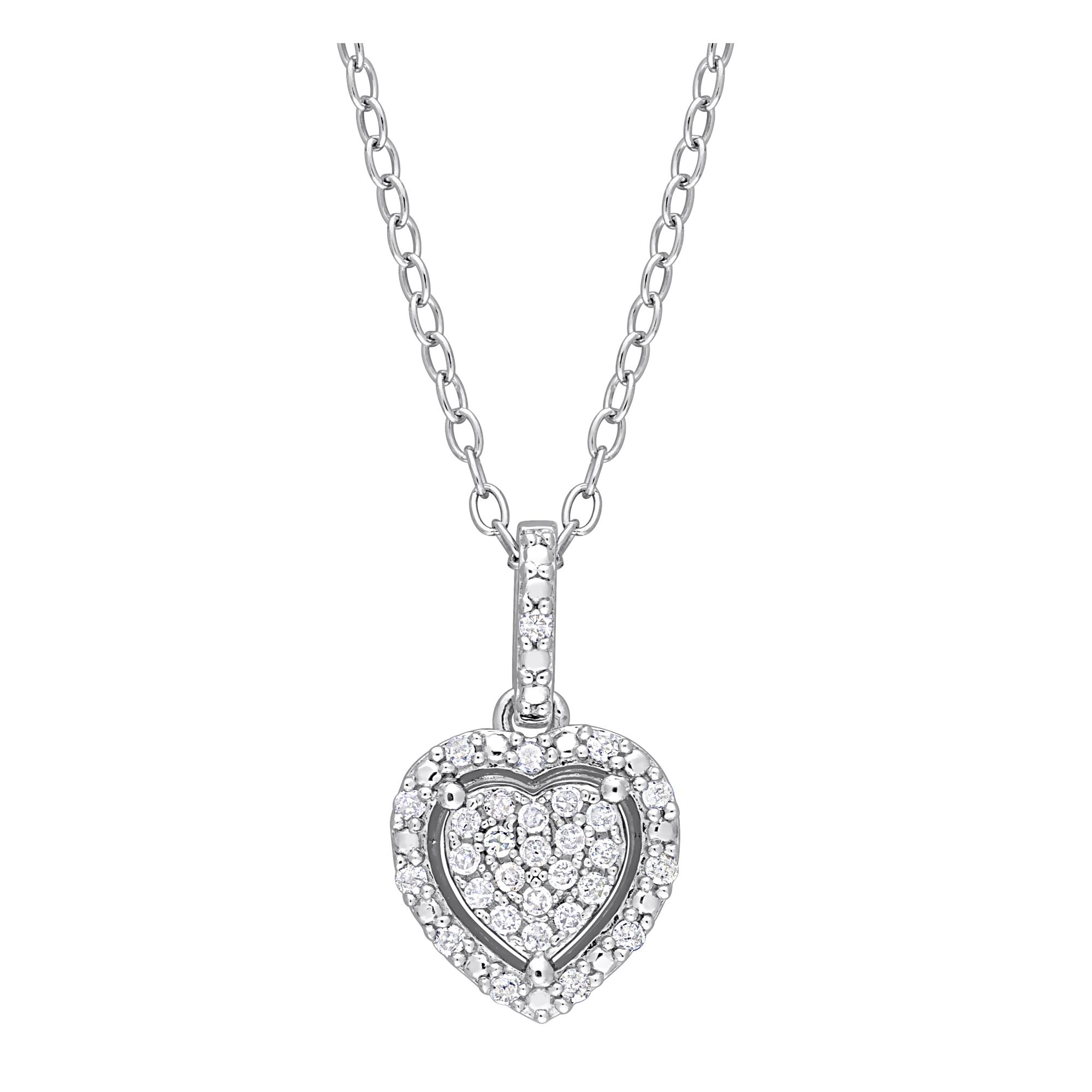 0.16 ct. t.w. Diamond Halo Heart Pendant with Chain in Sterling Silver