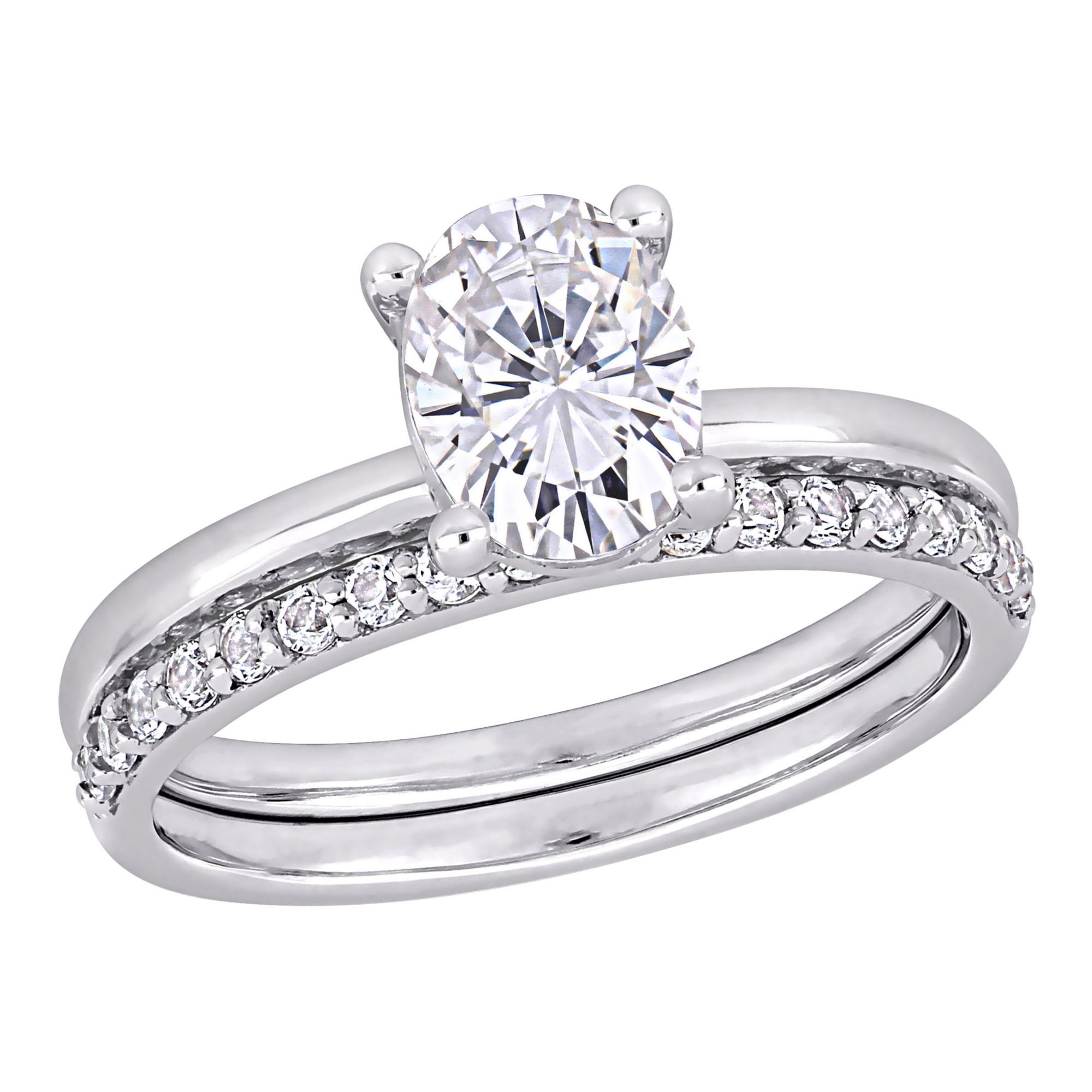 2 ct. DEW Created Moissanite and .33 ct. t.w. Diamond Oval Bridal Set in 14k White Gold - Size 5