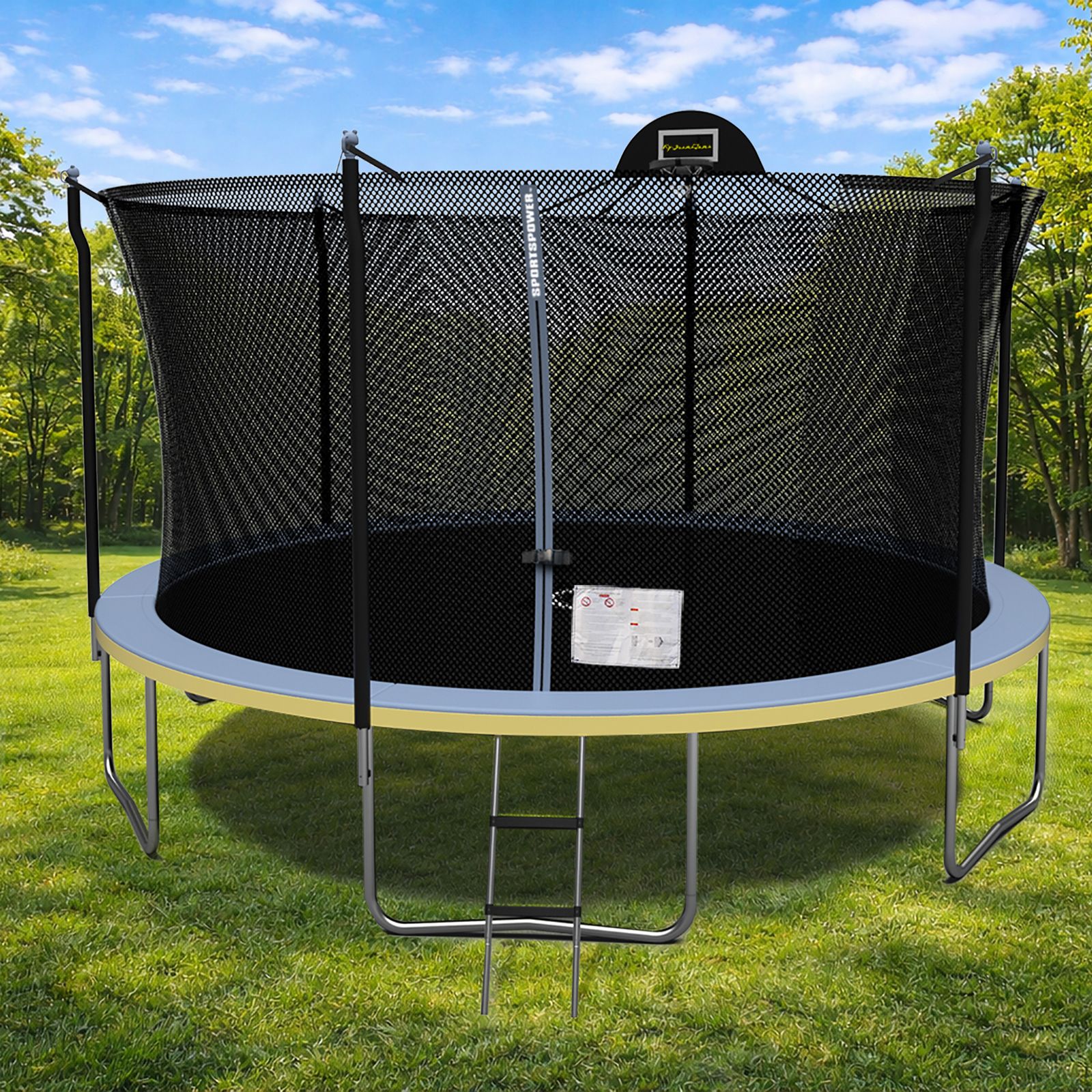 Sportspower 15' Trampoline with Enclosure, Basketball Hoop, and 2-Step Ladder