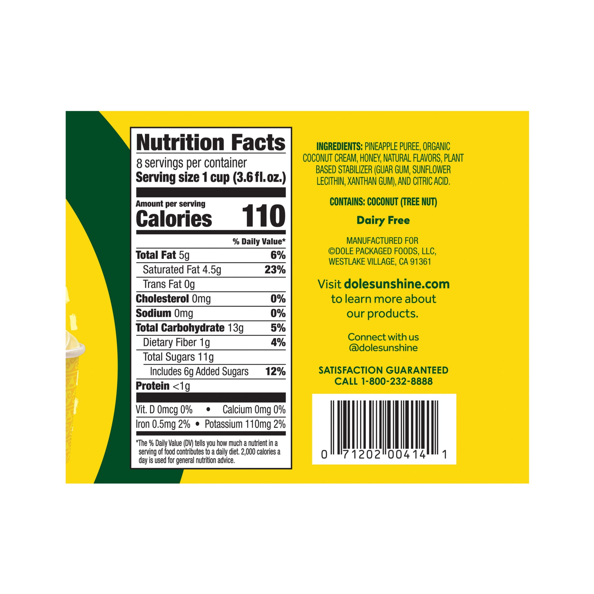 Ingredients: Pineapple Puree, Organic Coconut Cream, Honey, Natural Flavors, Plant Based Stabilizer (Guar Gum, Sunflower Lecithin, Xanthan Gum), And Citric Acid.