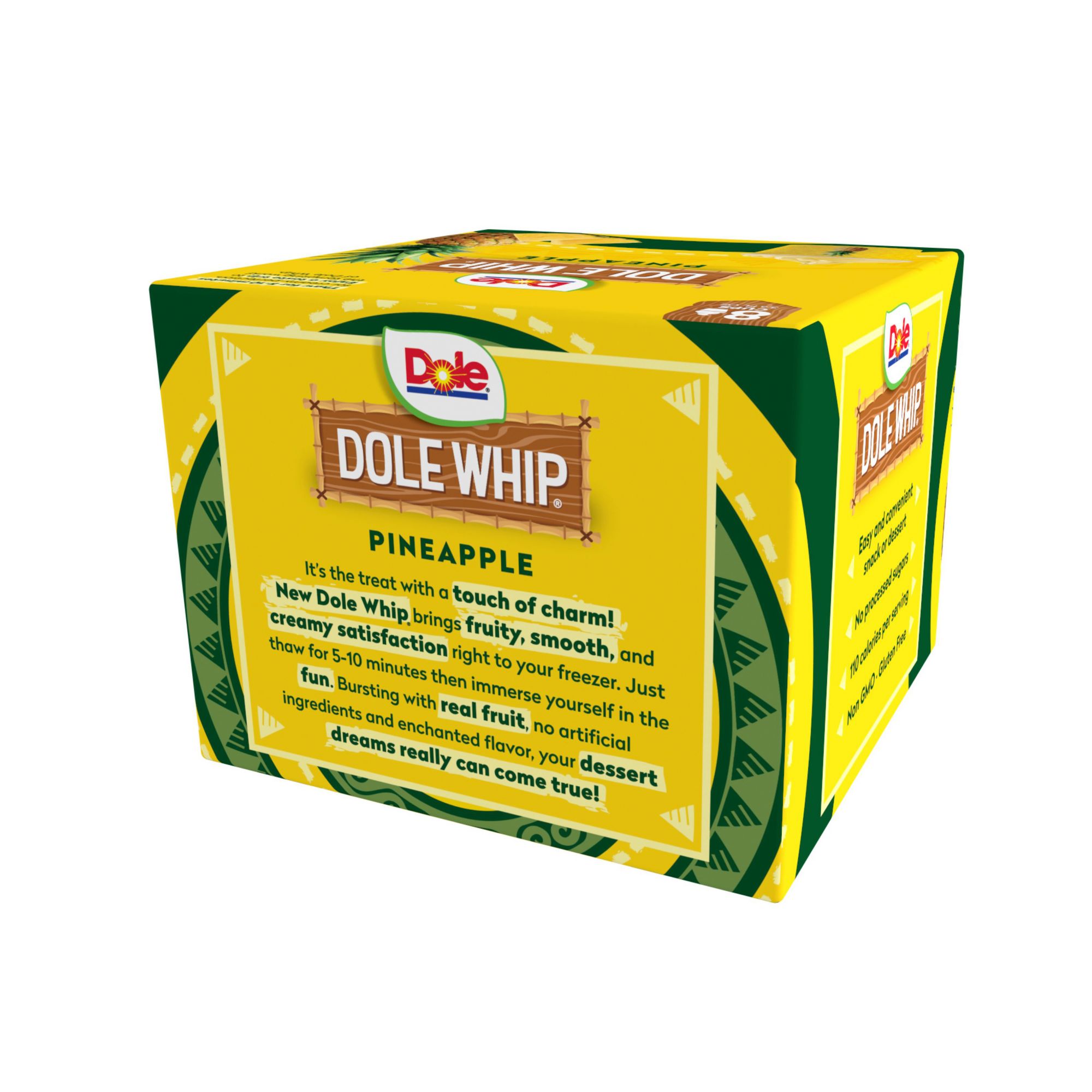 Escape into the tropical flavor of Dole Whip Pineapple. Real, sun-sweetened pineapple is blended with golden honey and frozen into a creamy, enchanting treat. Single-serving cups make snacking easy and fun. With real fruit, no artificial ingredients and only 110 calories per serving, you're free to transport yourself to the tropical world of Dole Whip anytime.