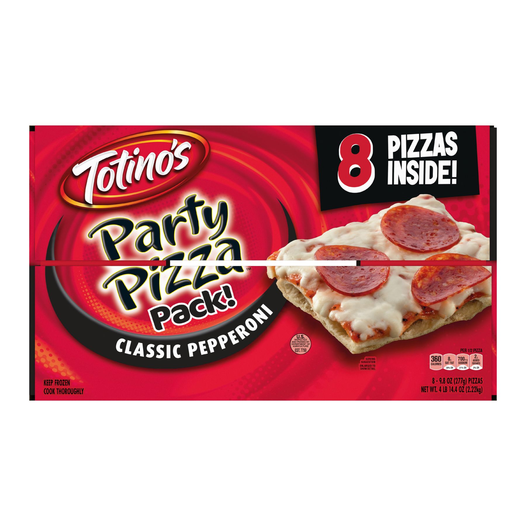 Invite your taste buds to this flavor party! Totino's Pepperoni Flavored Party Pizza is for people who need more pepperoni in their lives. With a quick baking time of under 20 minutes, simply pop the frozen pizza into the oven or bake two on a baking sheet for a larger gathering. Whether it's part of a busy weeknight dinner, or a quick after school snack for hungry kids or teens, Totino's Party Pizza is the perfect choice. Always a hit, every pizza pairs perfectly with your favorite snacks like pizza bagels, mini corn dogs, taquitos, and more. Totino's frozen pizzas are a classic that bring all the deliciousness without breaking the bank. Elevate your pepperoni pizza game with Totino's Pepperoni Party Pizza. Contains eight Party Pizzas in total.