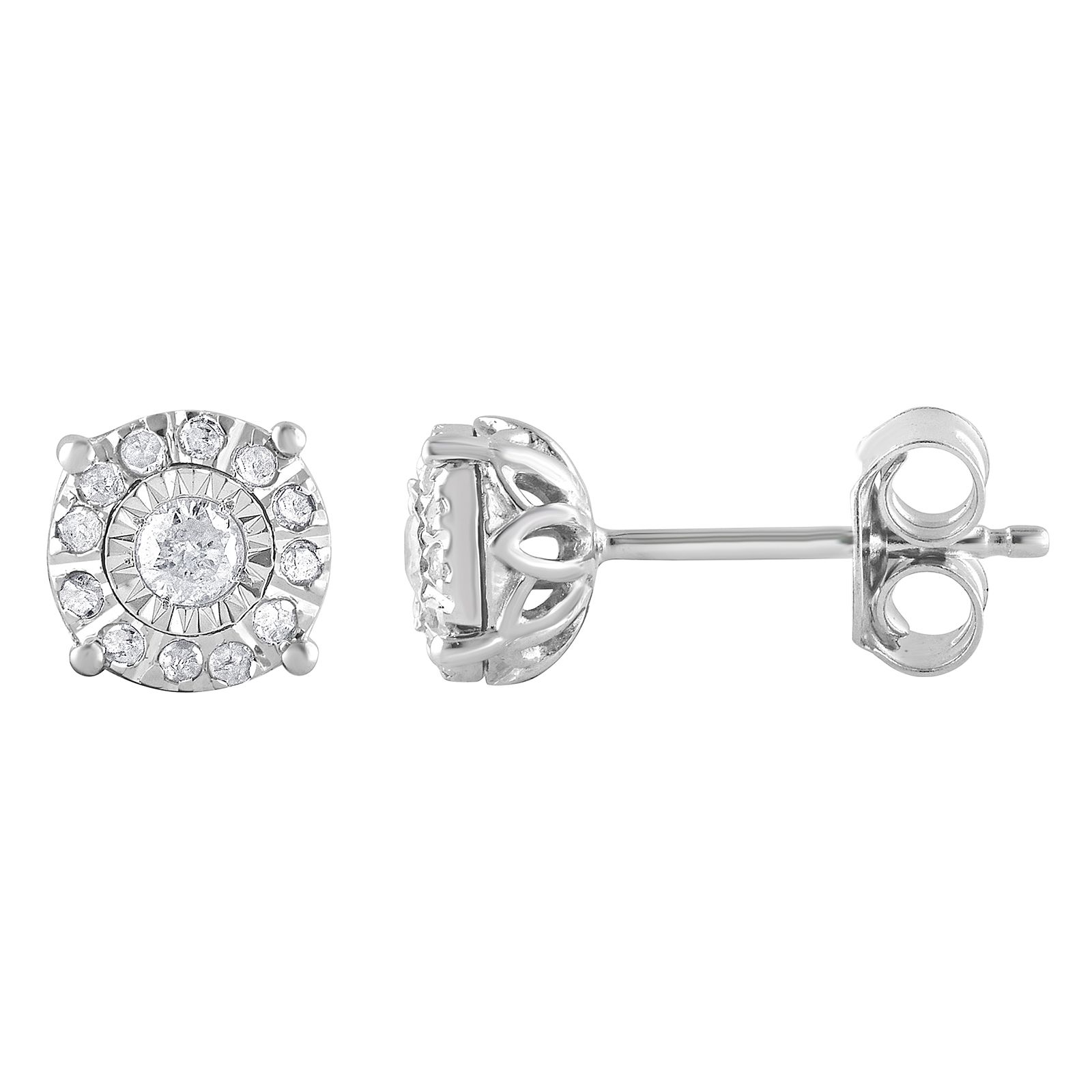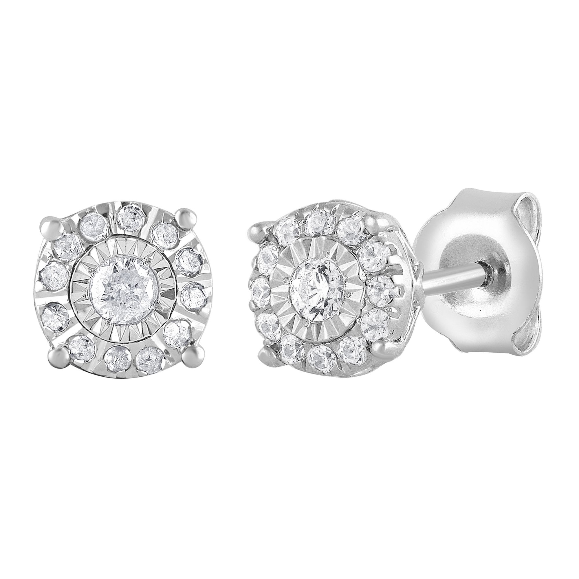 (11 Items)0.25 ct. t.w. 10K White Gold Illusion Set Diamond Stud Earrings