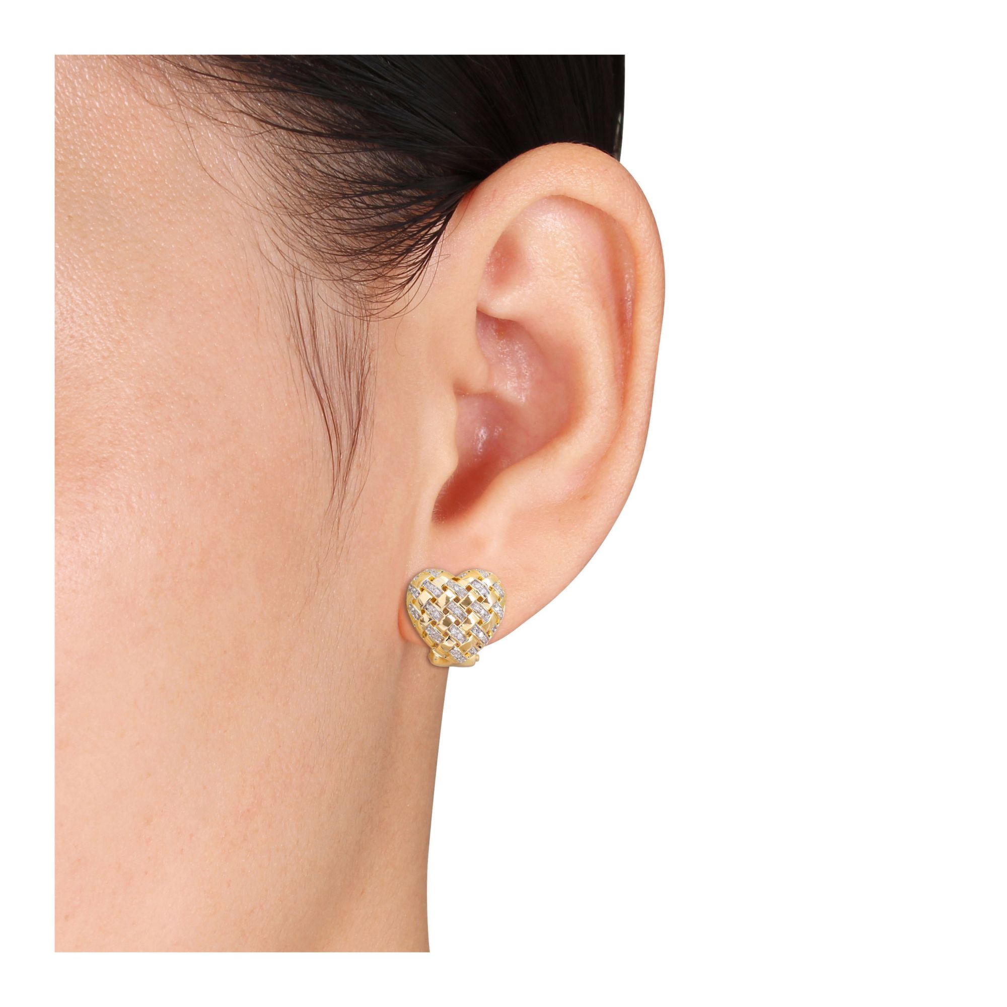 0.25 ct. t.w. Diamond Lattice Heart Earrings in Yellow Plated Sterling Silver