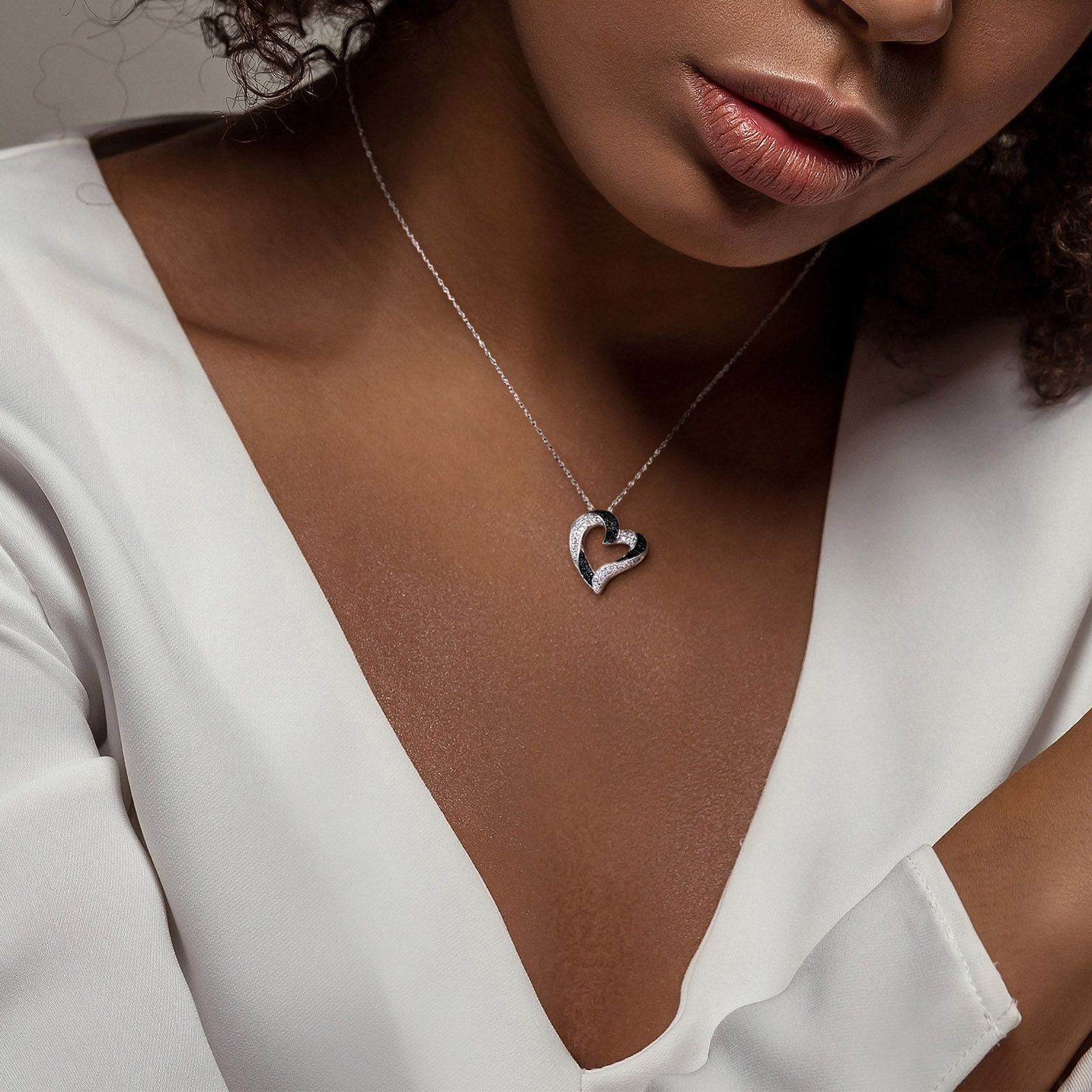 0.33 ct. t.w. Black and White Diamond Heart Necklace in 10k White Gold
