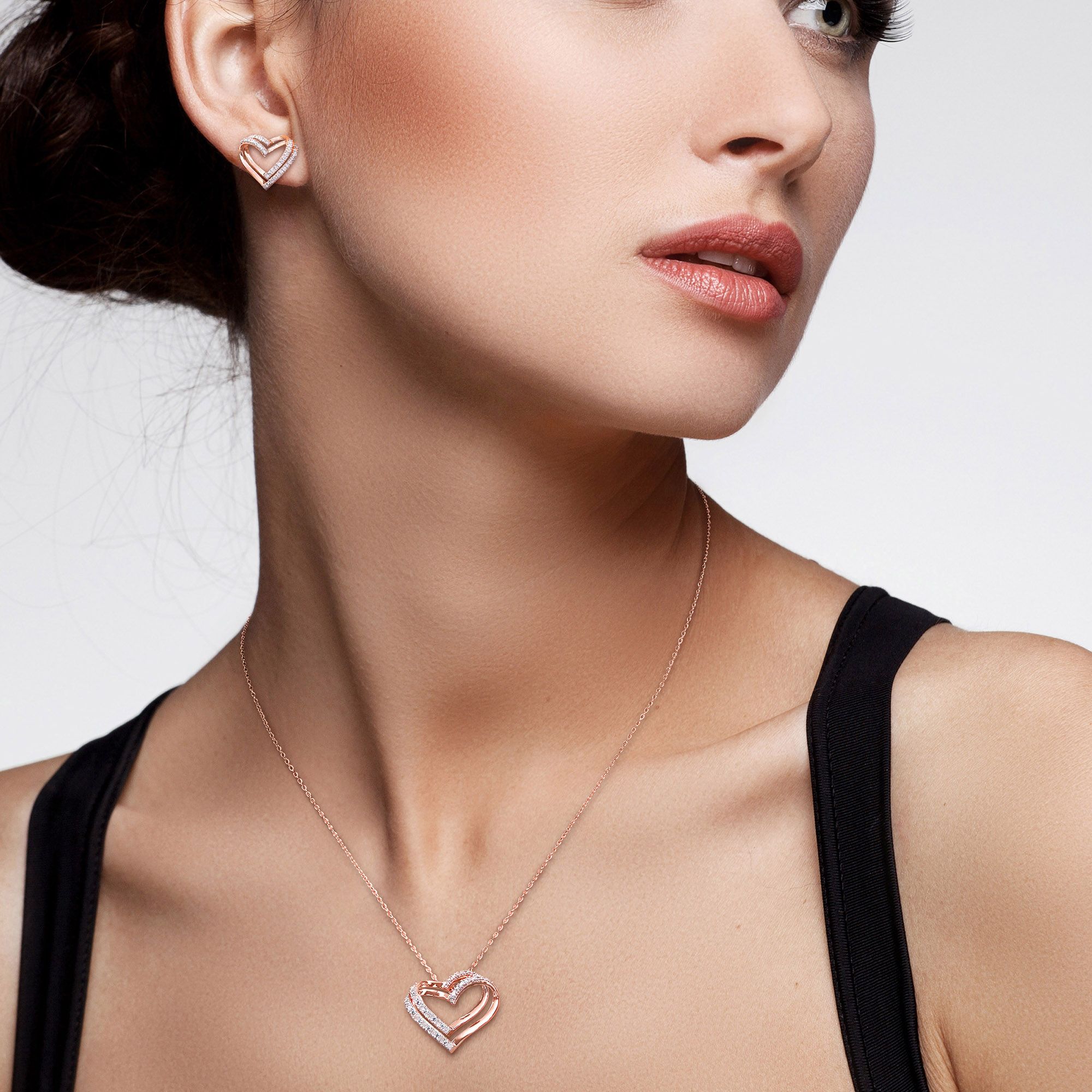 0.4 ct. t.w. Diamond Heart Necklace and Earrings 2-Pc. Set in Rose Plated Sterling Silver