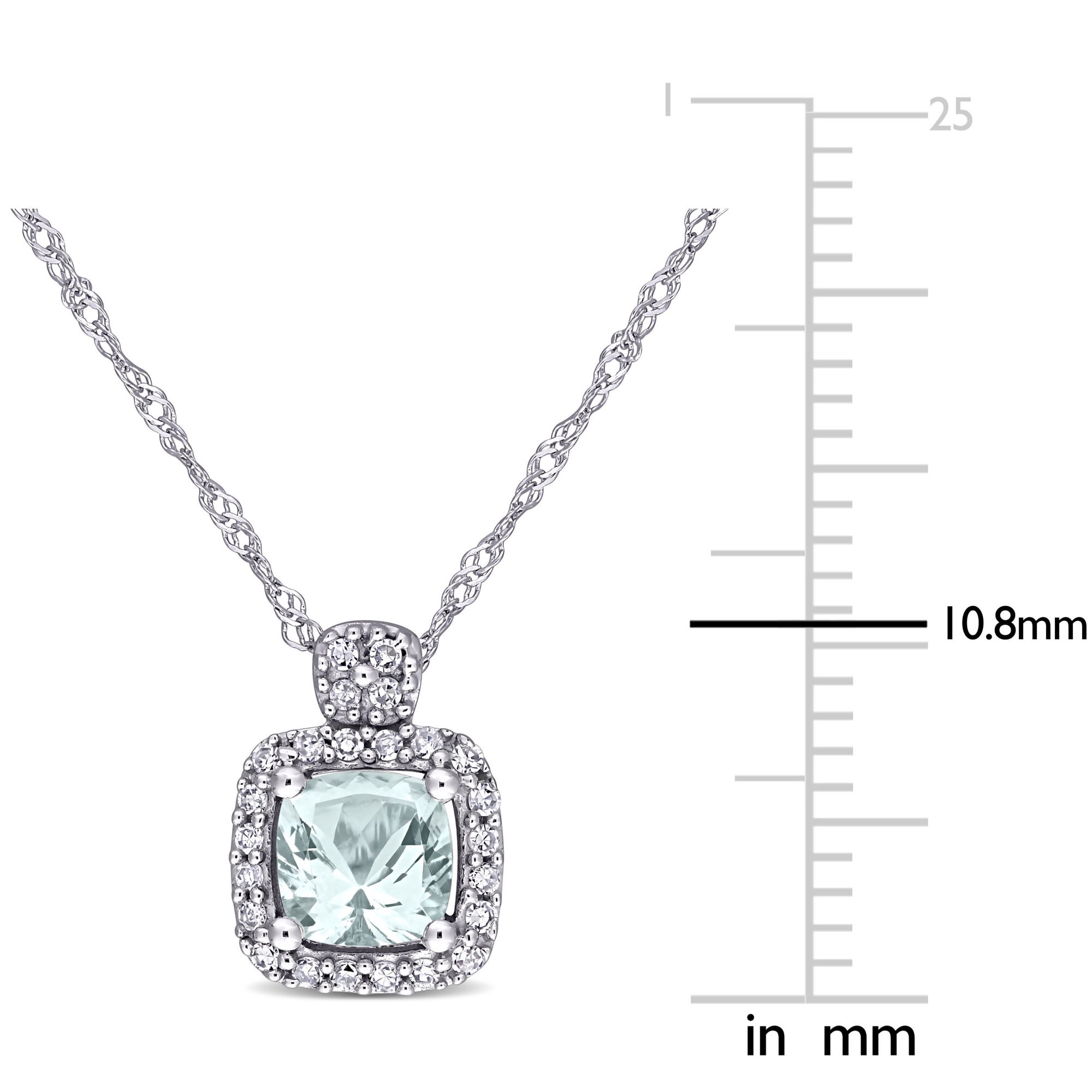 0.5 ct. t.g.w. Aquamarine and 0.1 ct. t.w. Diamond Halo Necklace in 10k White Gold
