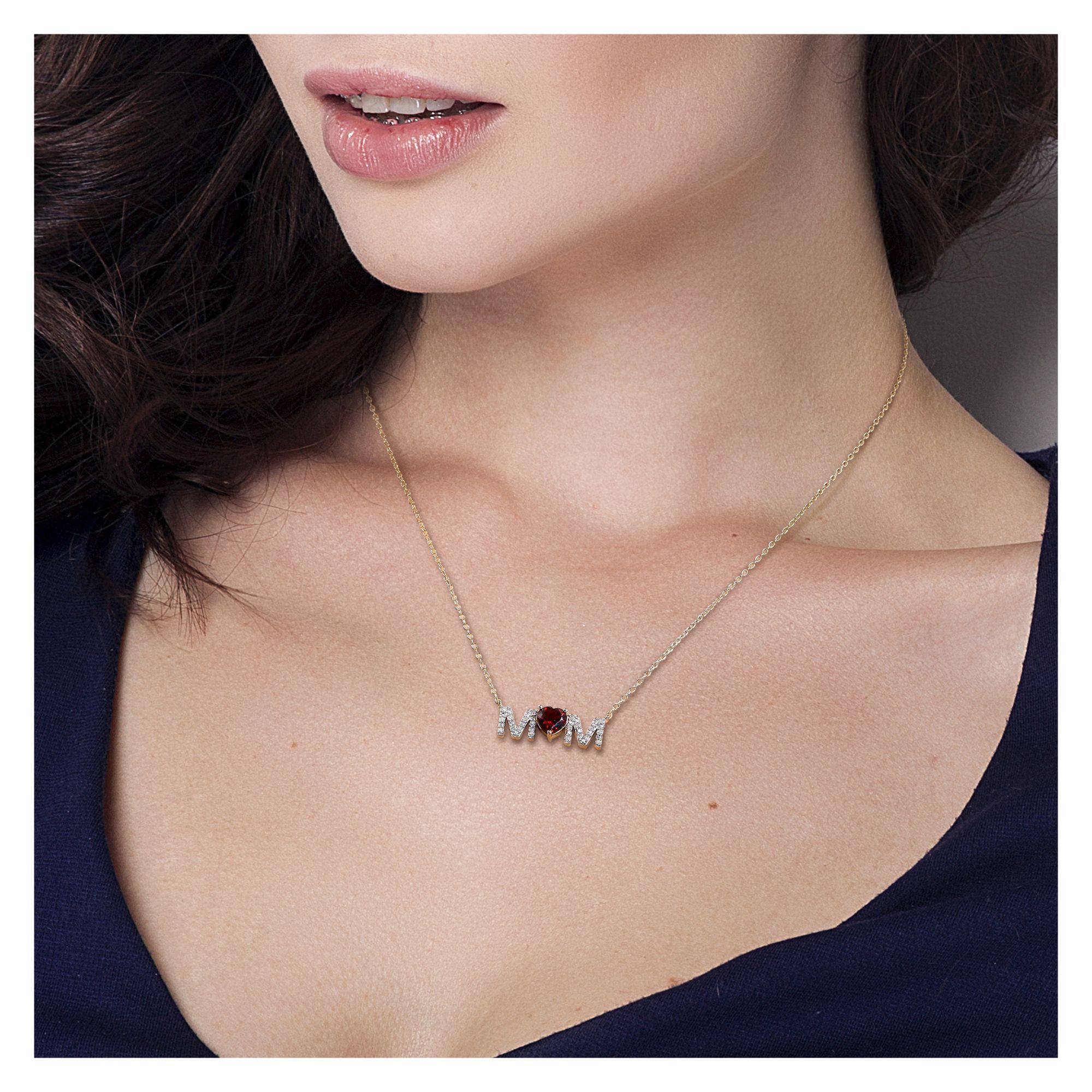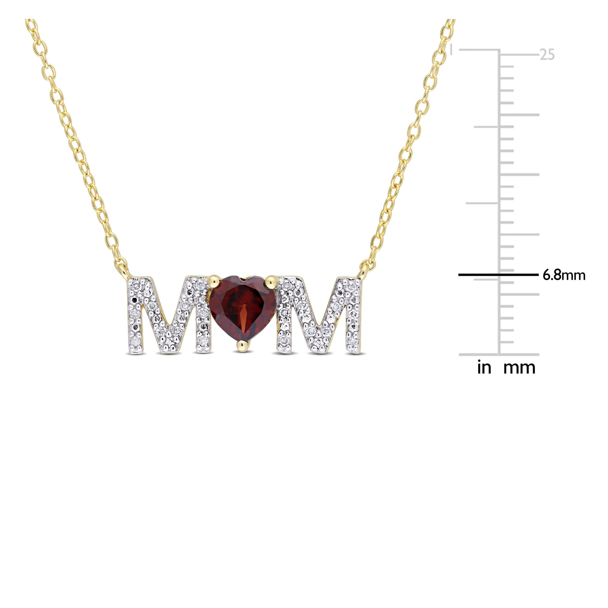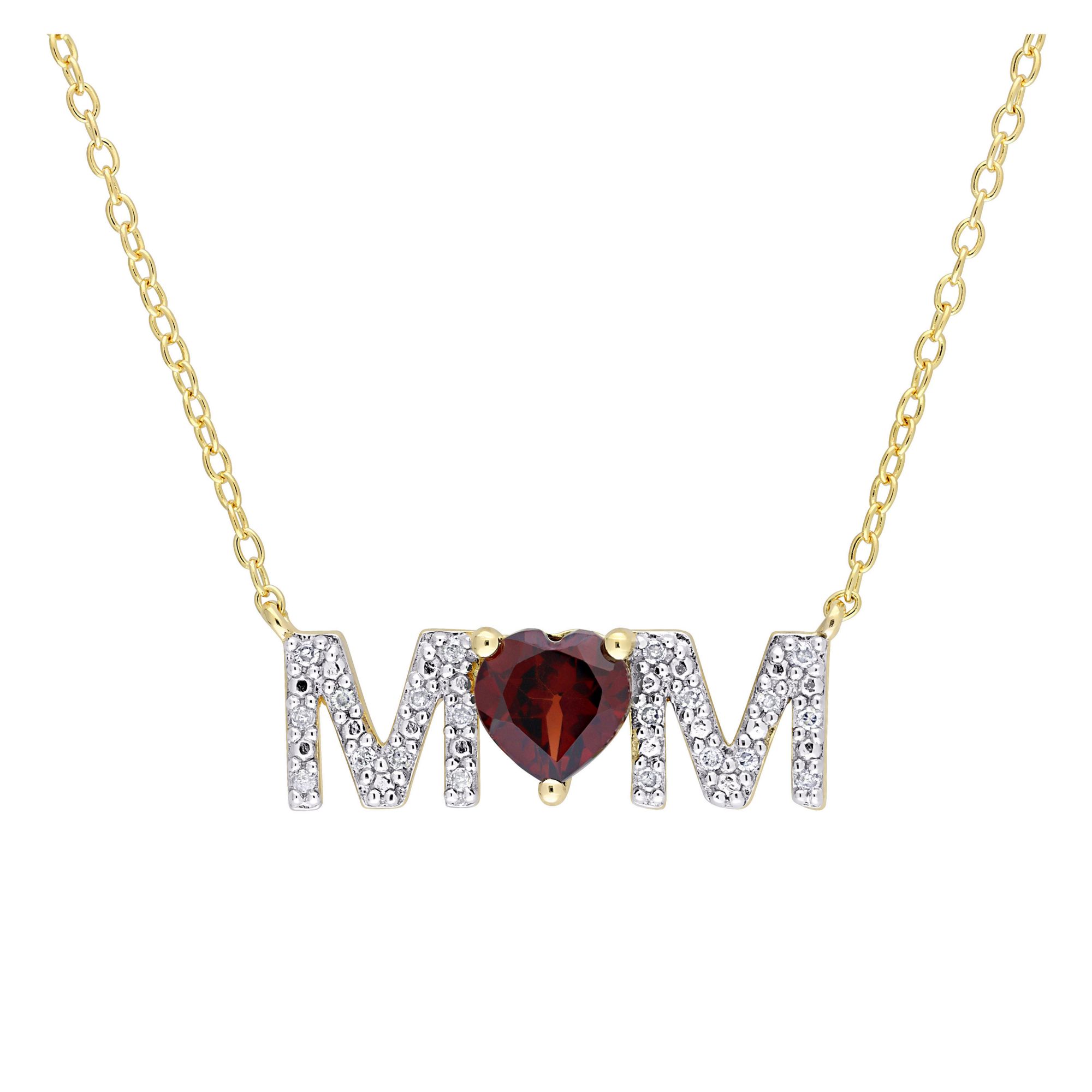 (21 Items)0.8 ct. t.g.w. Garnet and 0.1 ct. t.w. Diamond MOM Necklace in Yellow Plated Sterling Silver