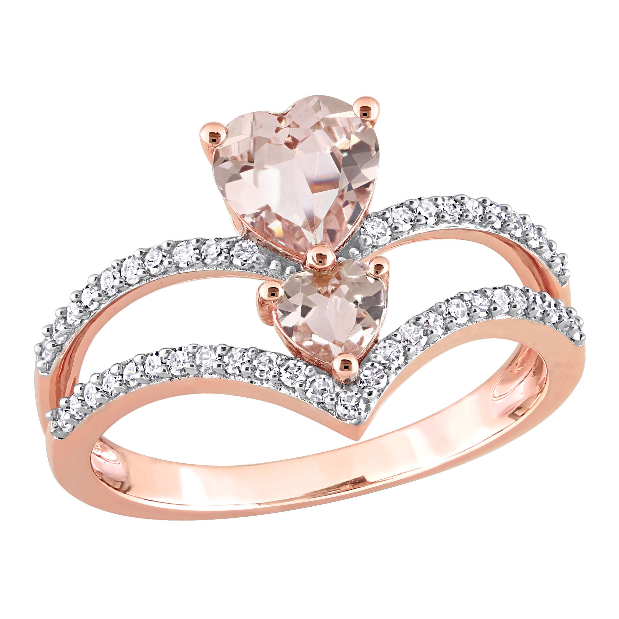0.87 ct. t.g.w. Morganite and 0.25 ct. t.w. Diamond Heart 2-Stone Ring in 10k Rose Gold - Size 9