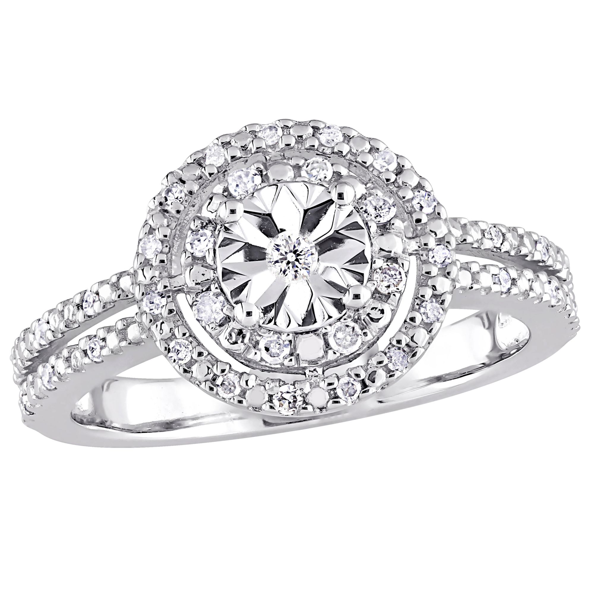 0.2 ct. t.w. Diamond Halo Split Shank Engagement Ring in Sterling Silver - Size 9