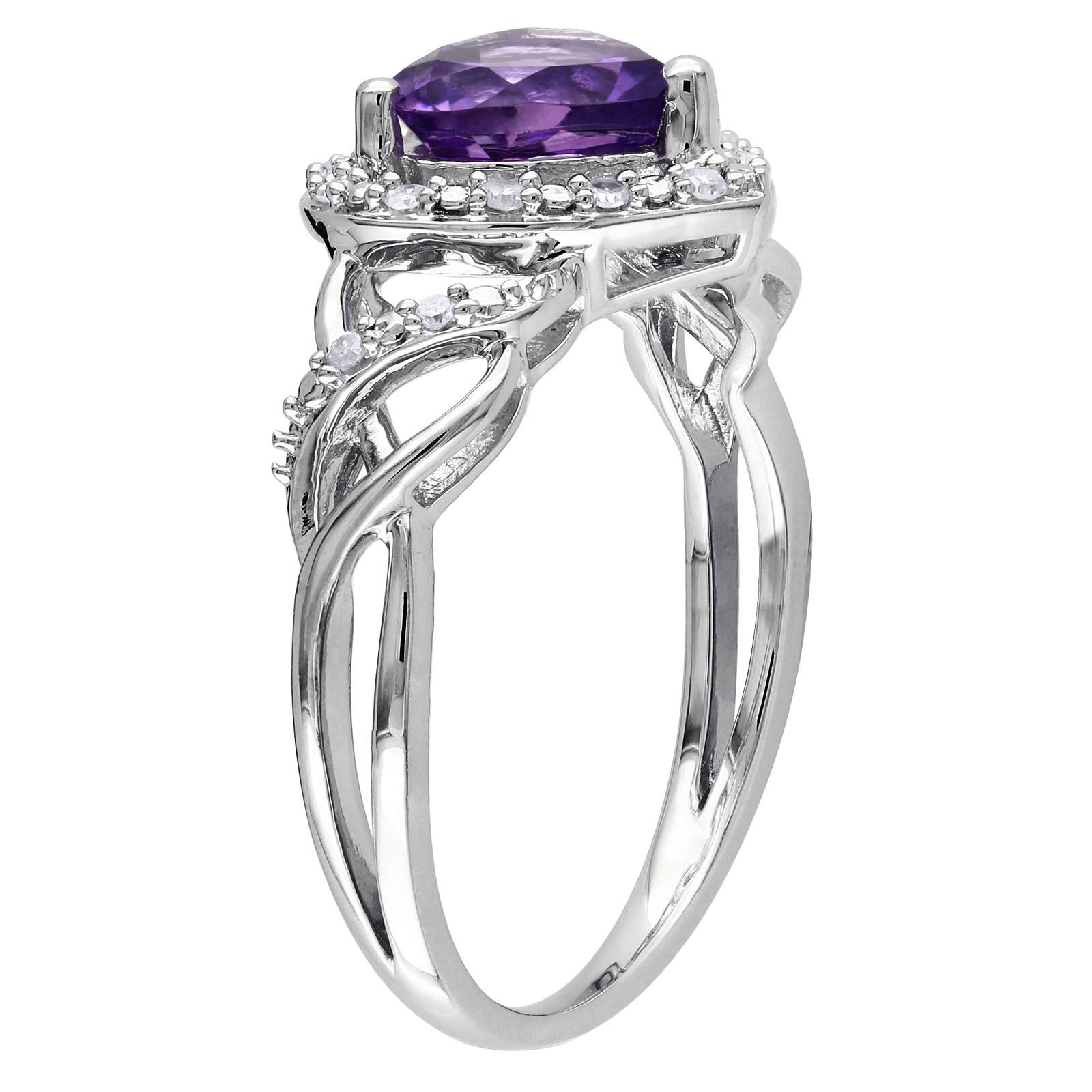 .1 ct. t.w. Diamond and Amethyst Open Heart Crossover Ring in Sterling Silver