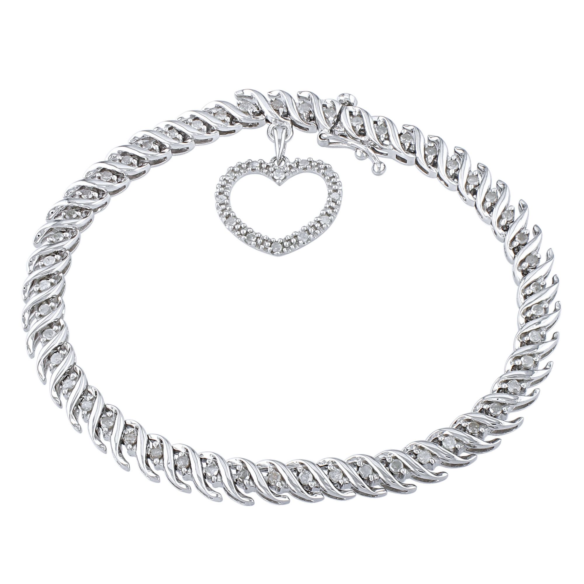 1 ct. t.w. Diamond Heart Charm Tennis Bracelet in Sterling Silver