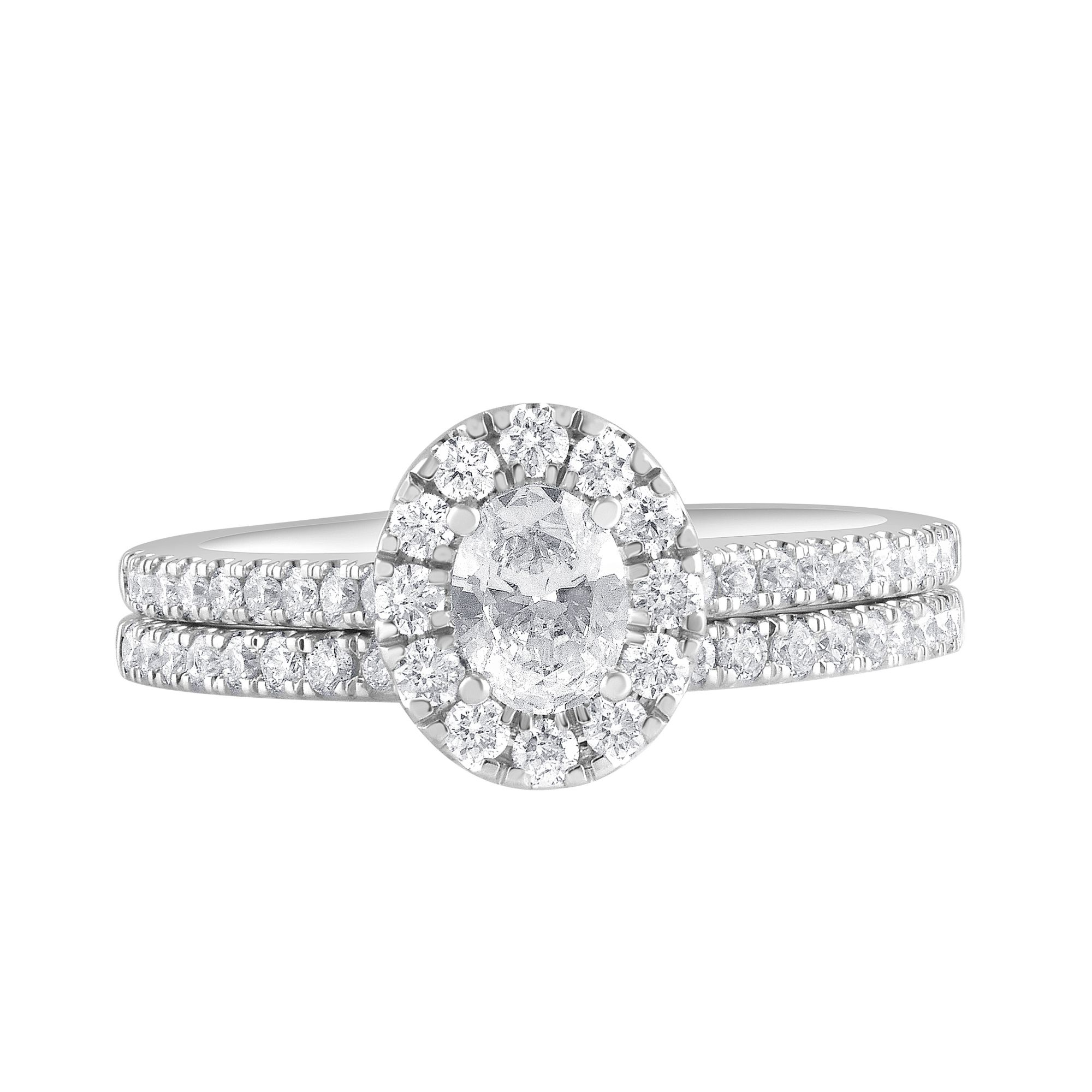 (30 Items)1 ct. t.w. Round Cut Diamond Halo Bridal Ring Set in 14k White Gold