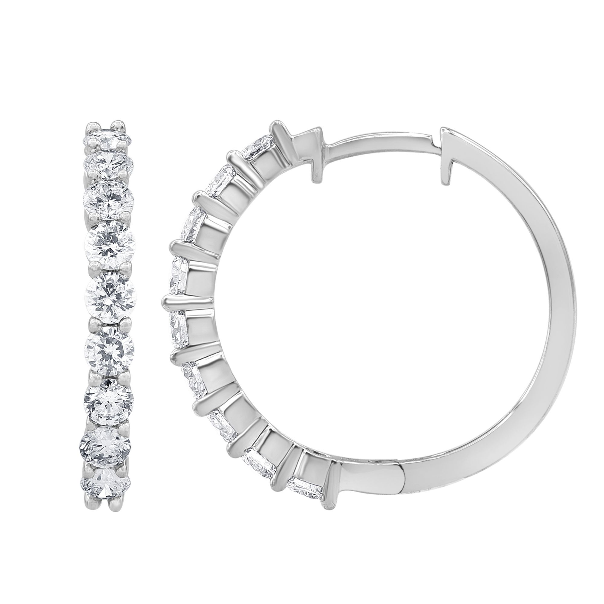 1 ct. t.w. Round Cut Diamond Hoop Earrings in 14k White Gold