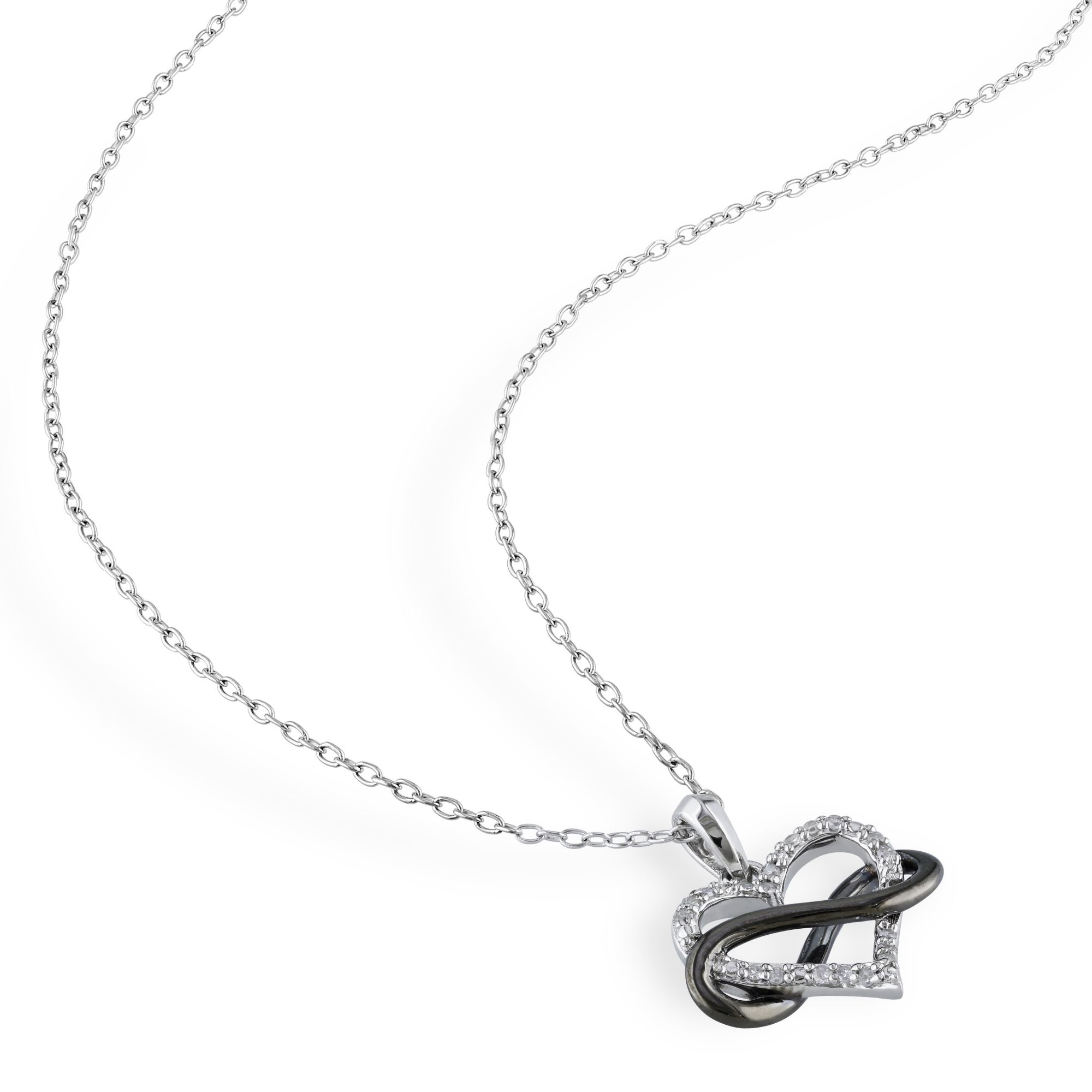 (20 Items).10 ct. t.w. Diamond Heart Pendant in Black and White Sterling Silver