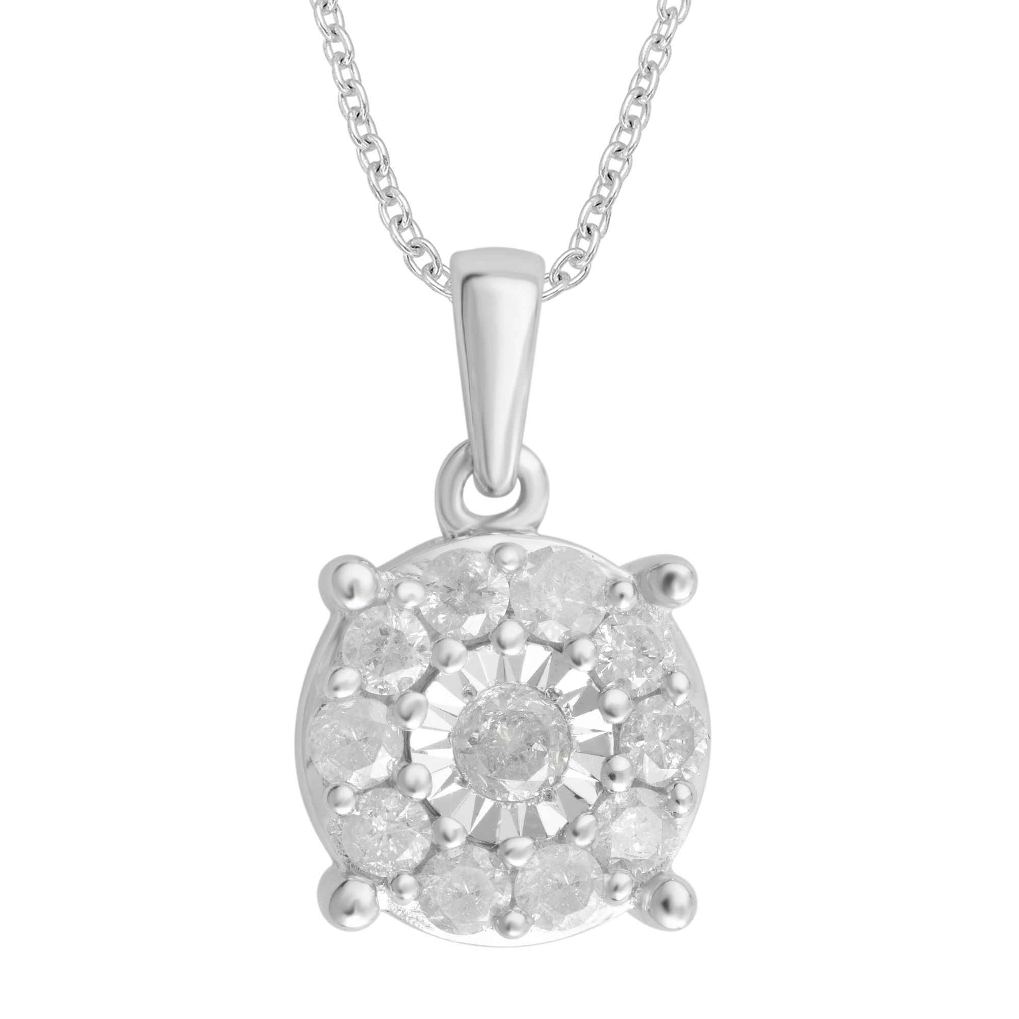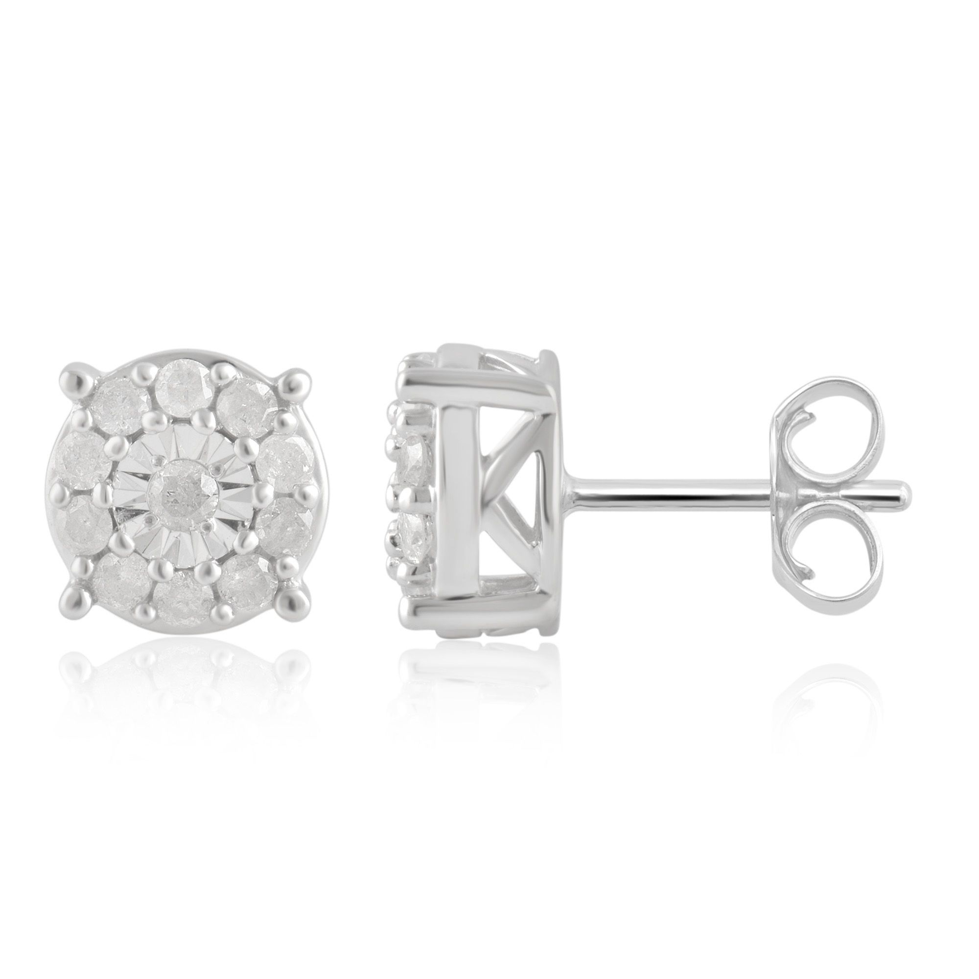 Style: Earrings and Pendant Set Carat/ct. t.w.: 1.00 ct. t.w. Cut: Round Color: I-J Clarity: I3 Count: 33 Gemstone: Diamond Lab Created: No Metal: Sterling Silver Finish: Polished Chain: Box Chain Clasp/Closure: Butterfly Backs and Spring Ring Clasp Warranty: limited