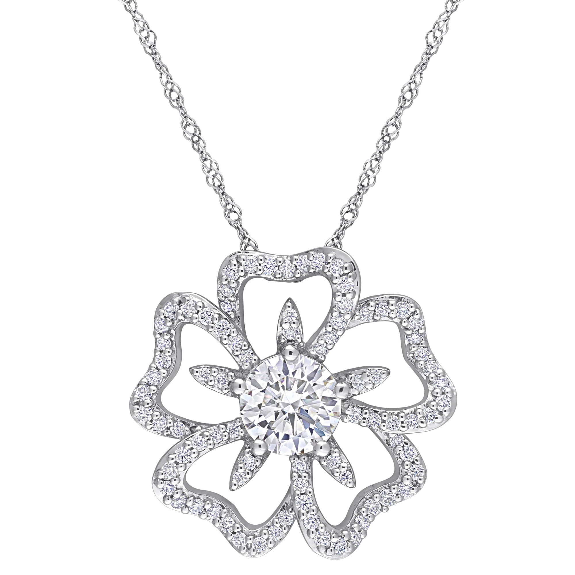 Includes 1.1 ct. t.g.w. Created Moissanite Flower Necklace in Sterling Silver