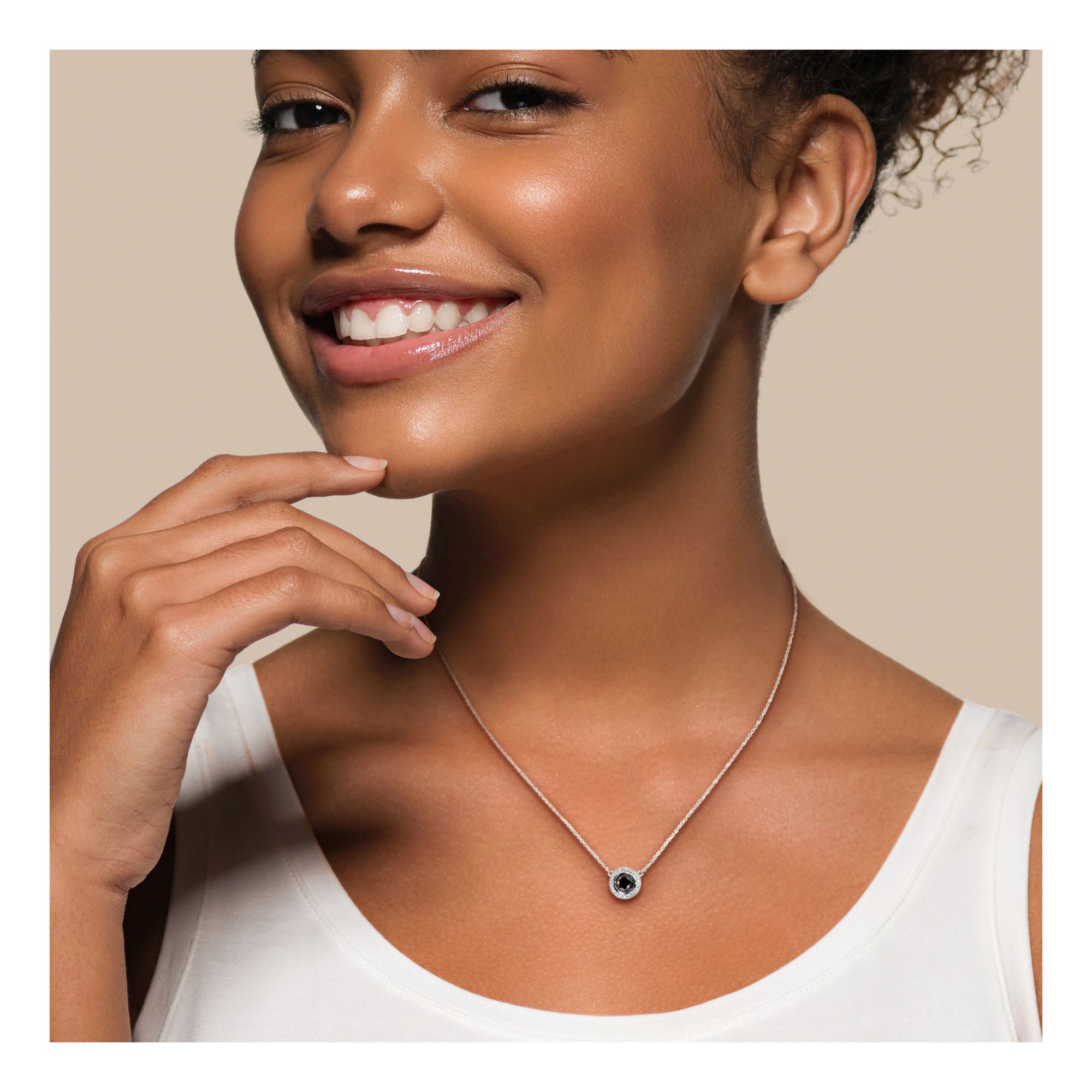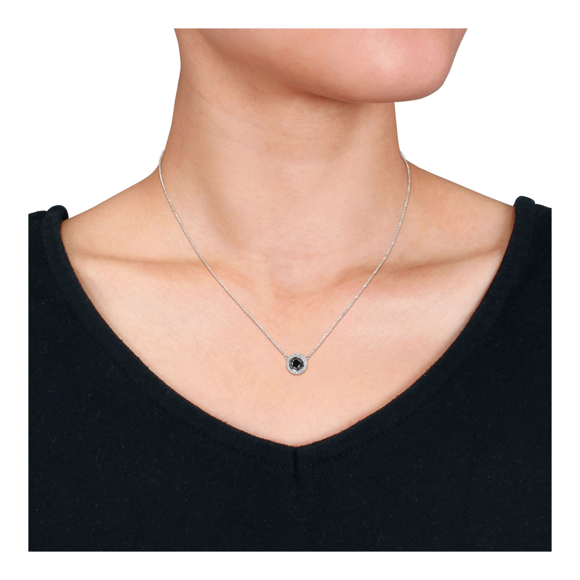 1.10 ct. TW Black & White Diamond Halo Pendant Necklace in 14k White Gold