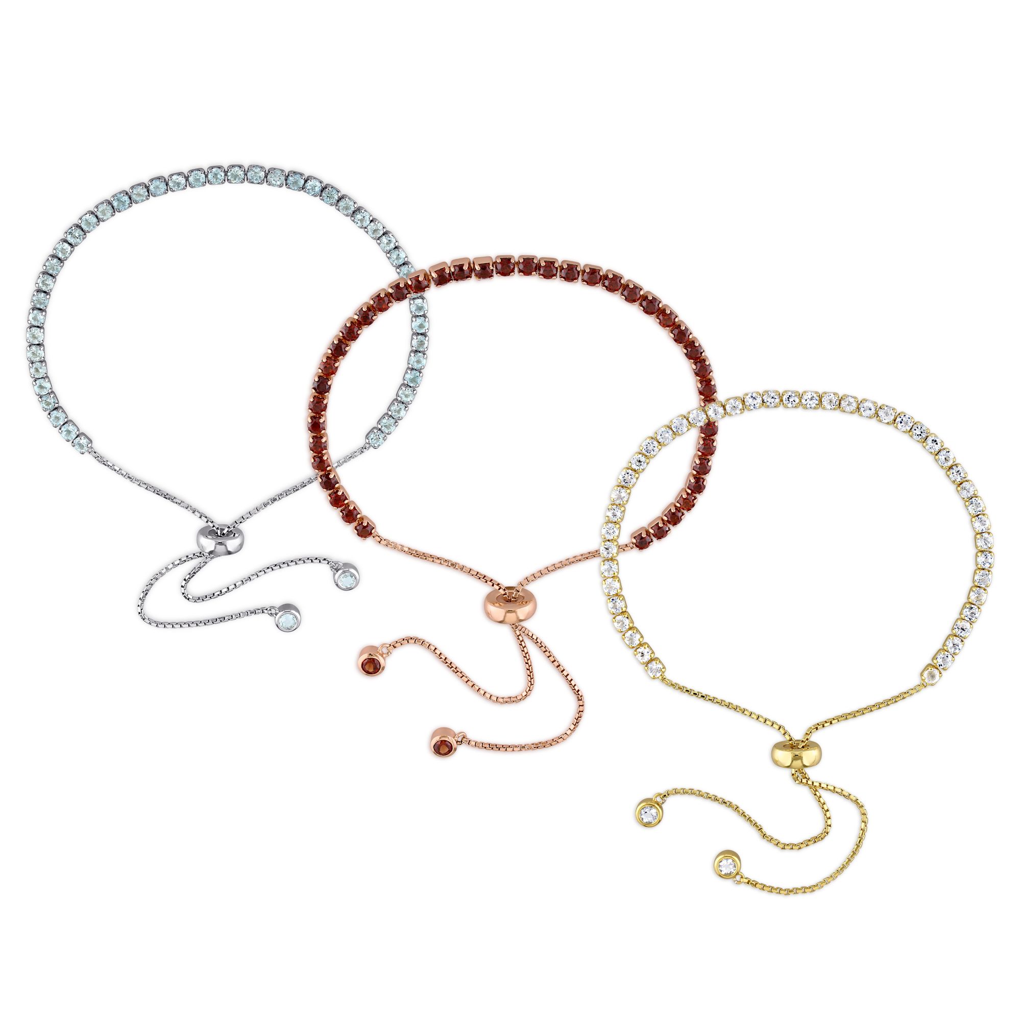11.33 ct. TGW Blue Topaz, White Topaz and Garnet 3-Pc. Bolo Bracelet Set in Sterling Silver