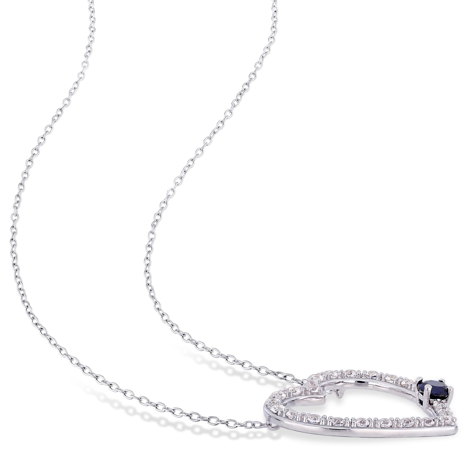1.14 ct. t.w. Created Blue and White Sapphire Heart Necklace in Sterling Silver