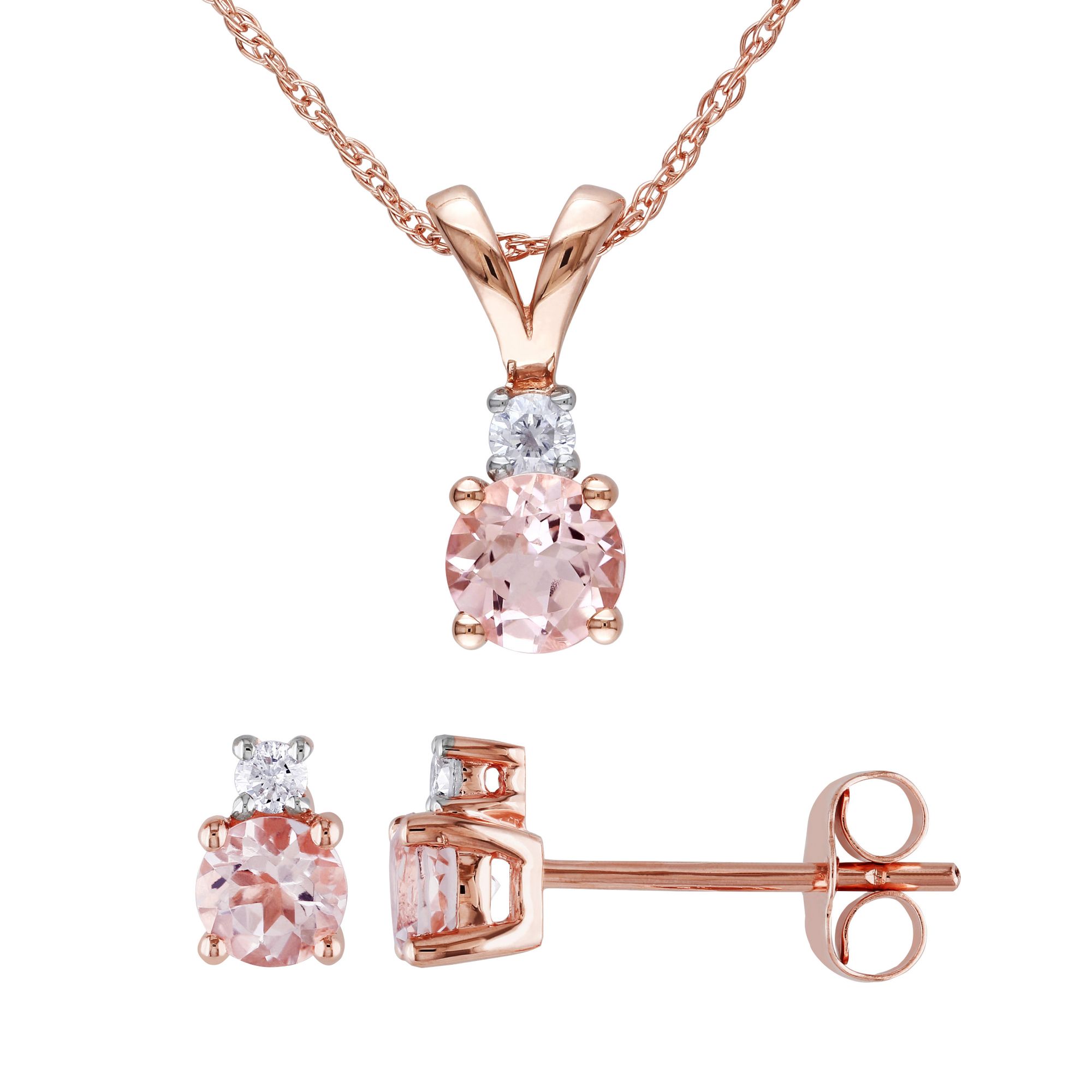 1.2 ct. t.g.w. Morganite and Diamond Solitaire Necklace and Earrings 2-Pc. Set in 10k Rose Gold