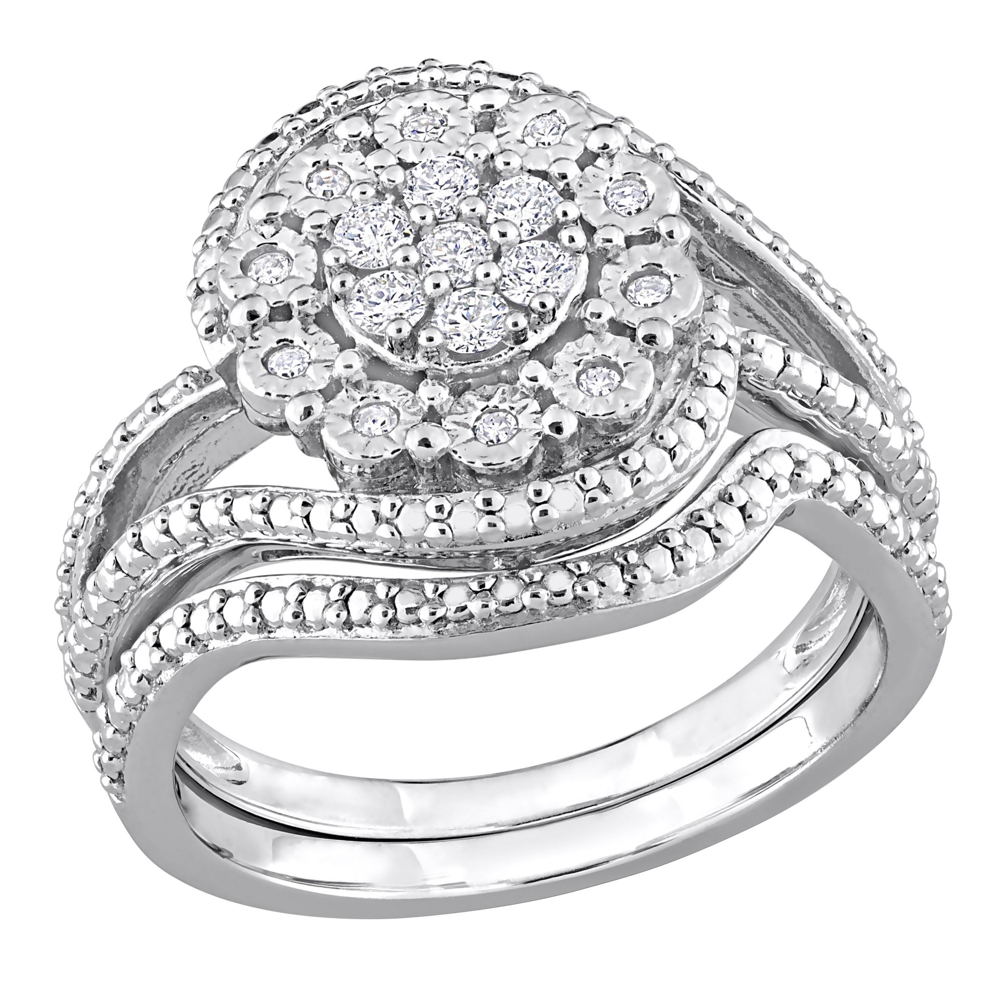 .25 ct. t.w. Diamond Floral Vintage Bridal Set in Sterling Silver, Size 7