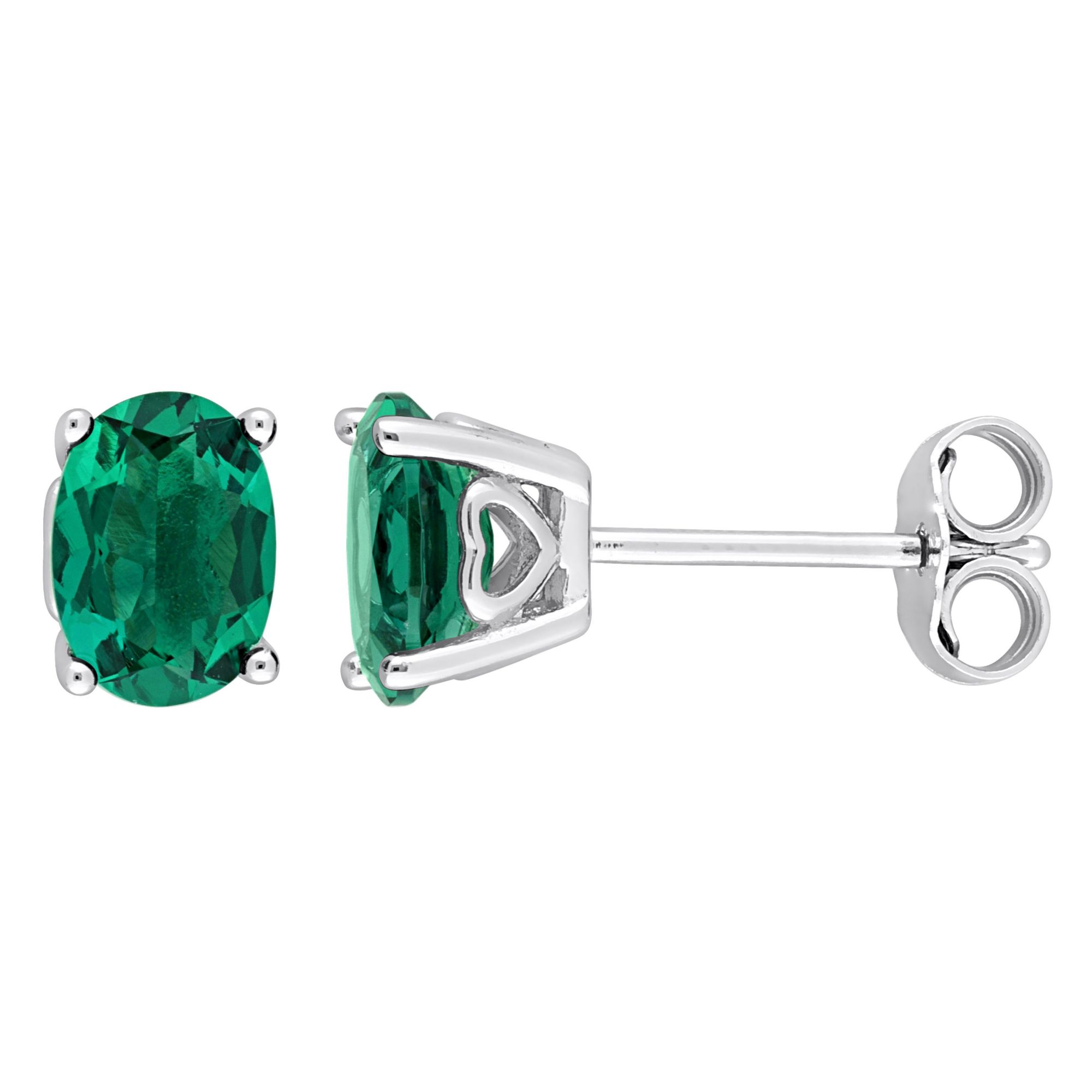 1.38 ct. t.g.w. Oval Created Emerald Stud Earrings in Sterling Silver
