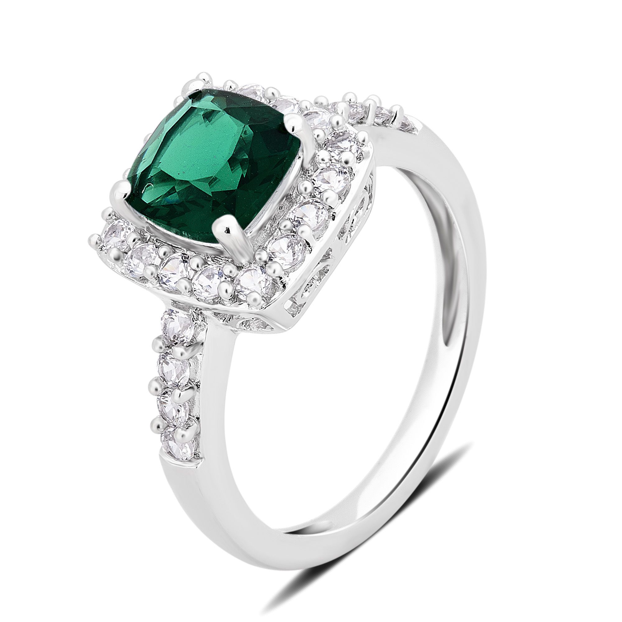 Express your love with this emerald gemstone ring. Simply stunning, this fierce gemstone ring speaks fashion volumes. Just for her, this fashionable big ring makes a lasting bold impression. The ring is crafted in sterling silver and finished with a bright polished shine.