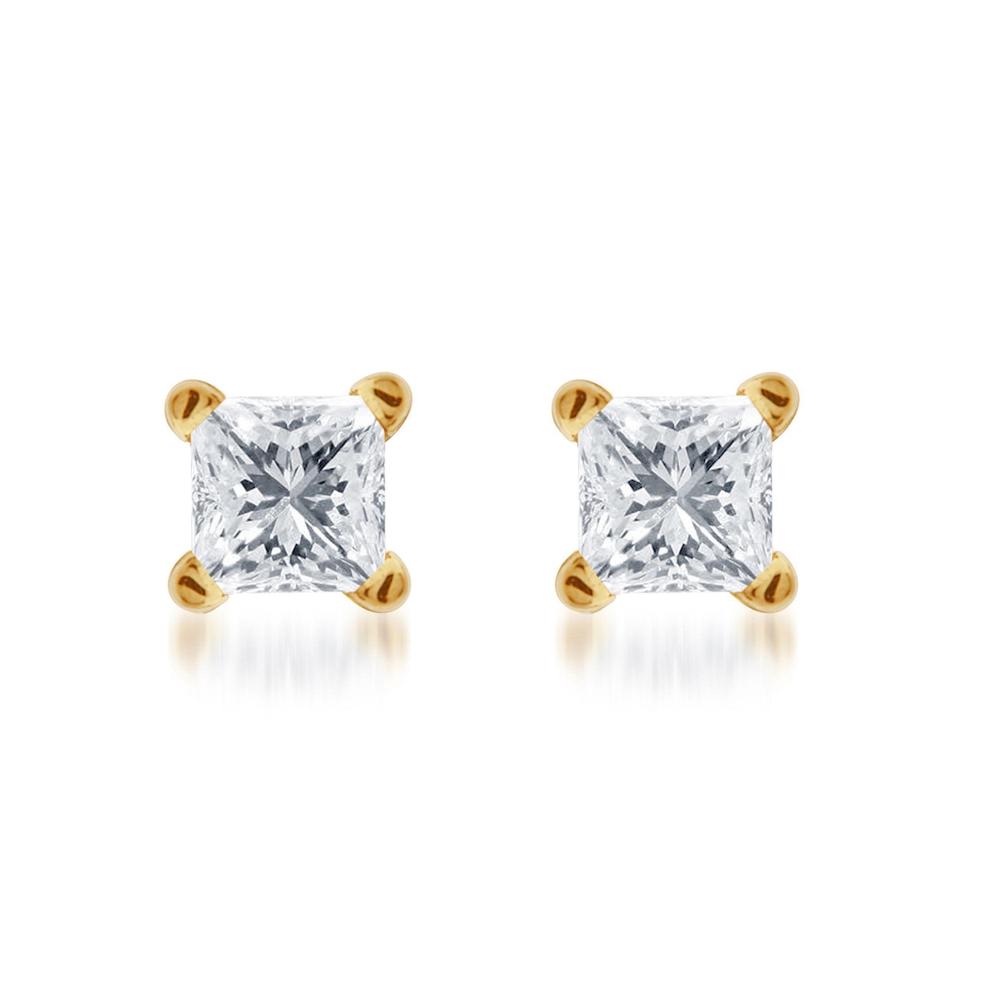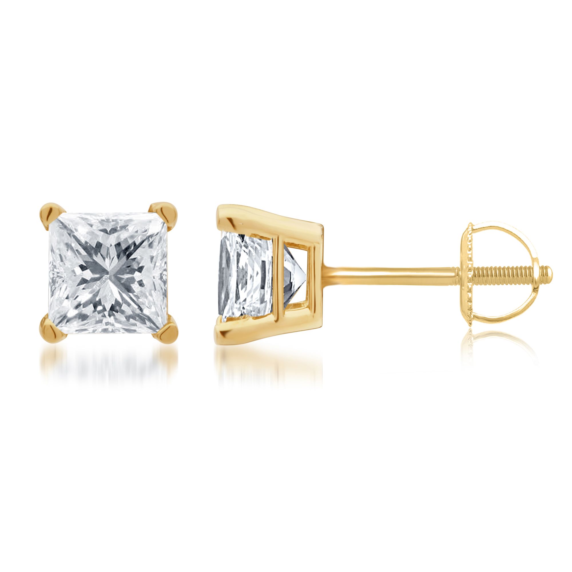 Style: Stud Earrings Carat or ct. t.w.: 1.50 ct. t.w. Cut: Princess Color: HI Clarity: I2-I3 Count: 2 Metal: 14k Yellow Gold Finish: Polished Backing: Post with Friction Back