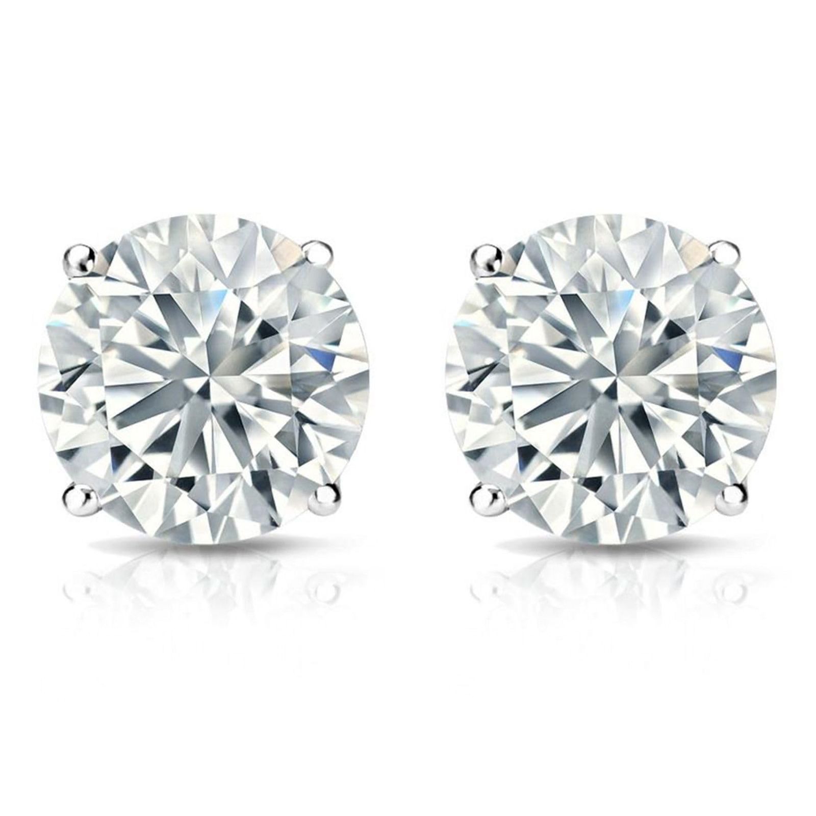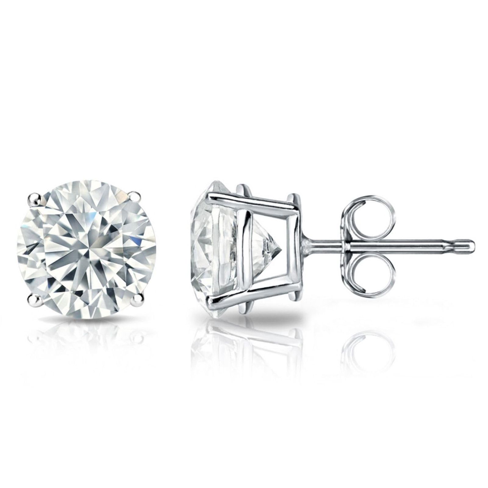 1.50 ct. t.w. Round Lab Grown Diamond Stud Earrings in 14K White Gold, Push Back, F Color, VS Clarity, 4 Prong Setting, Fine Je