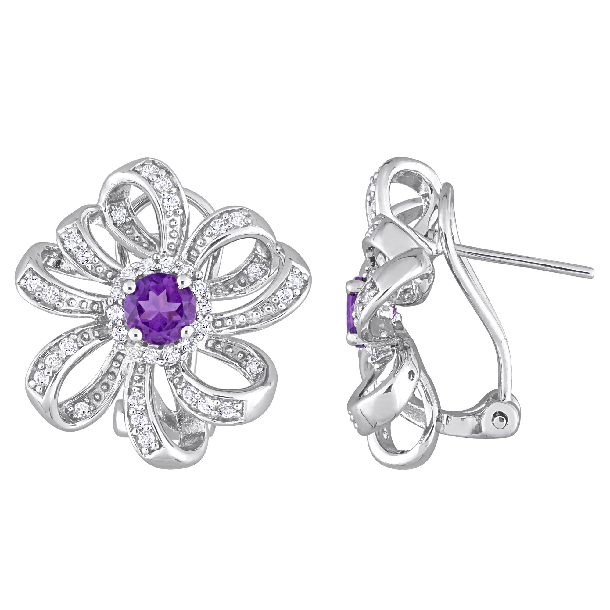 1.62 ct. t.g.w Amethyst and White Topaz Flower Earrings in Sterling Silver