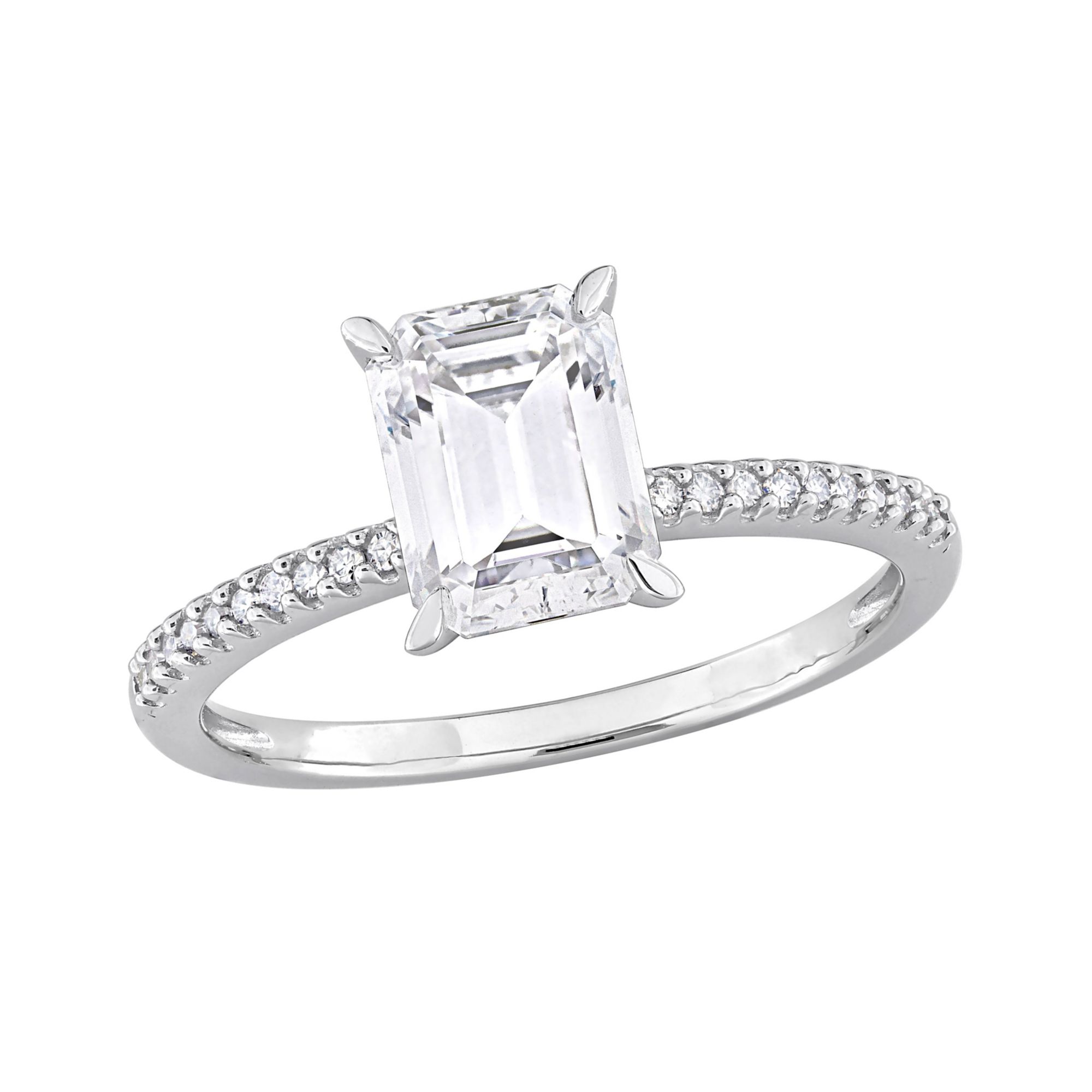 1.75 ct. DEW Emerald-cut Moissanite and 0.1 ct t.w. Diamond Ring in 14k White Gold