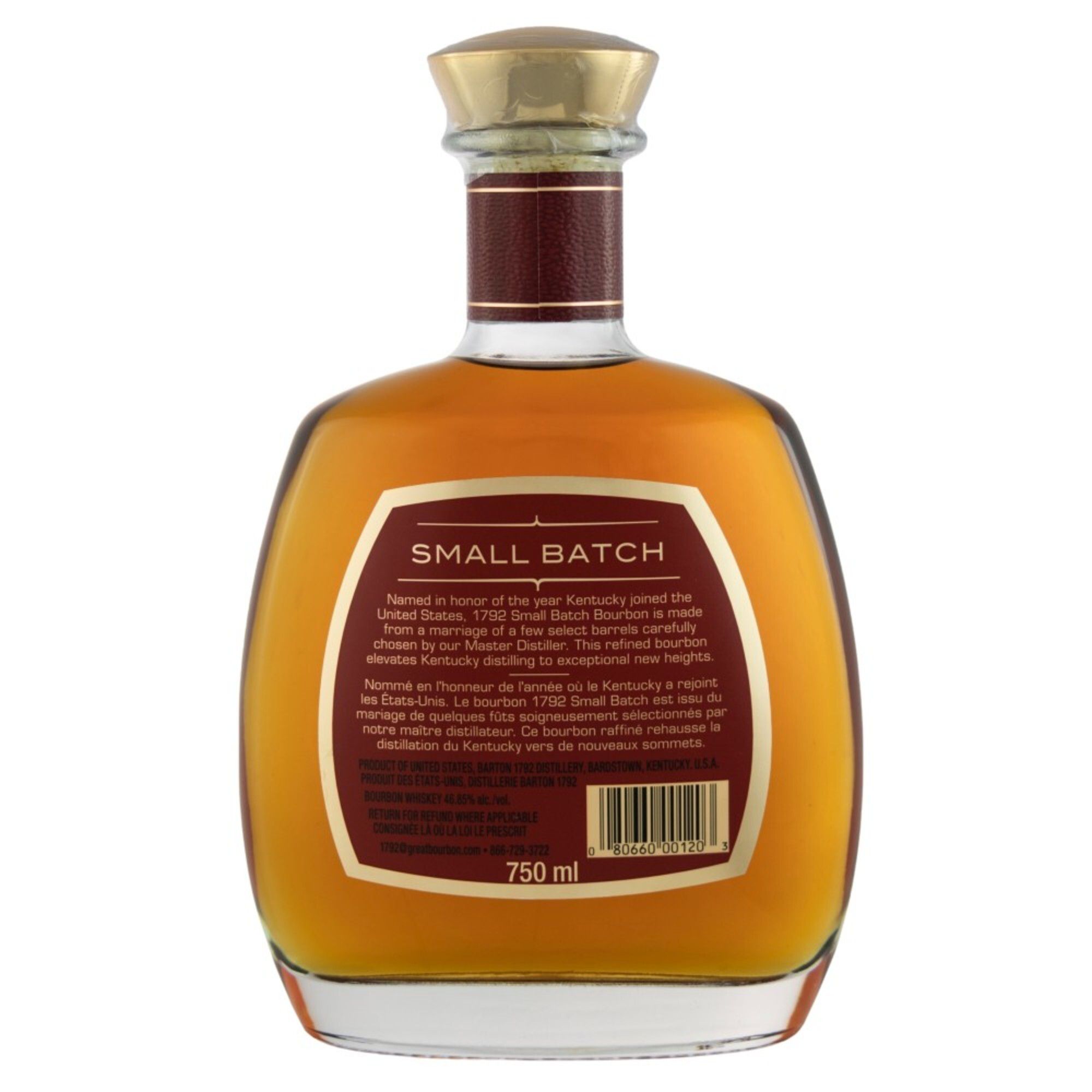 One 750 mL bottle of 1792 Small Batch Kentucky Straight Bourbon Whiskey, 93.7 proof