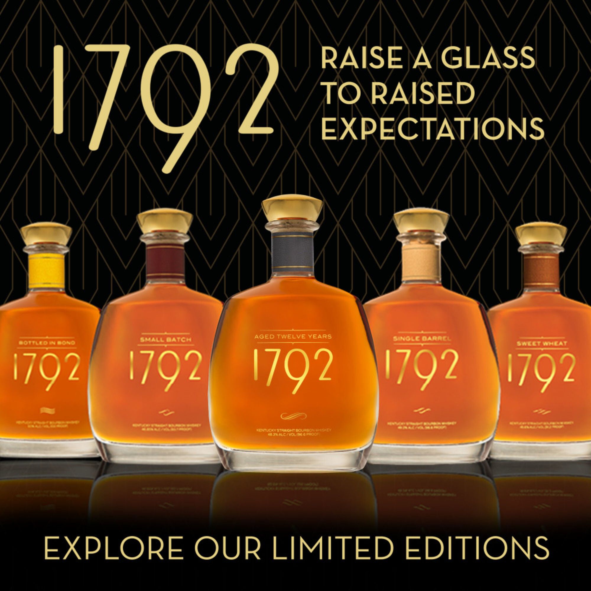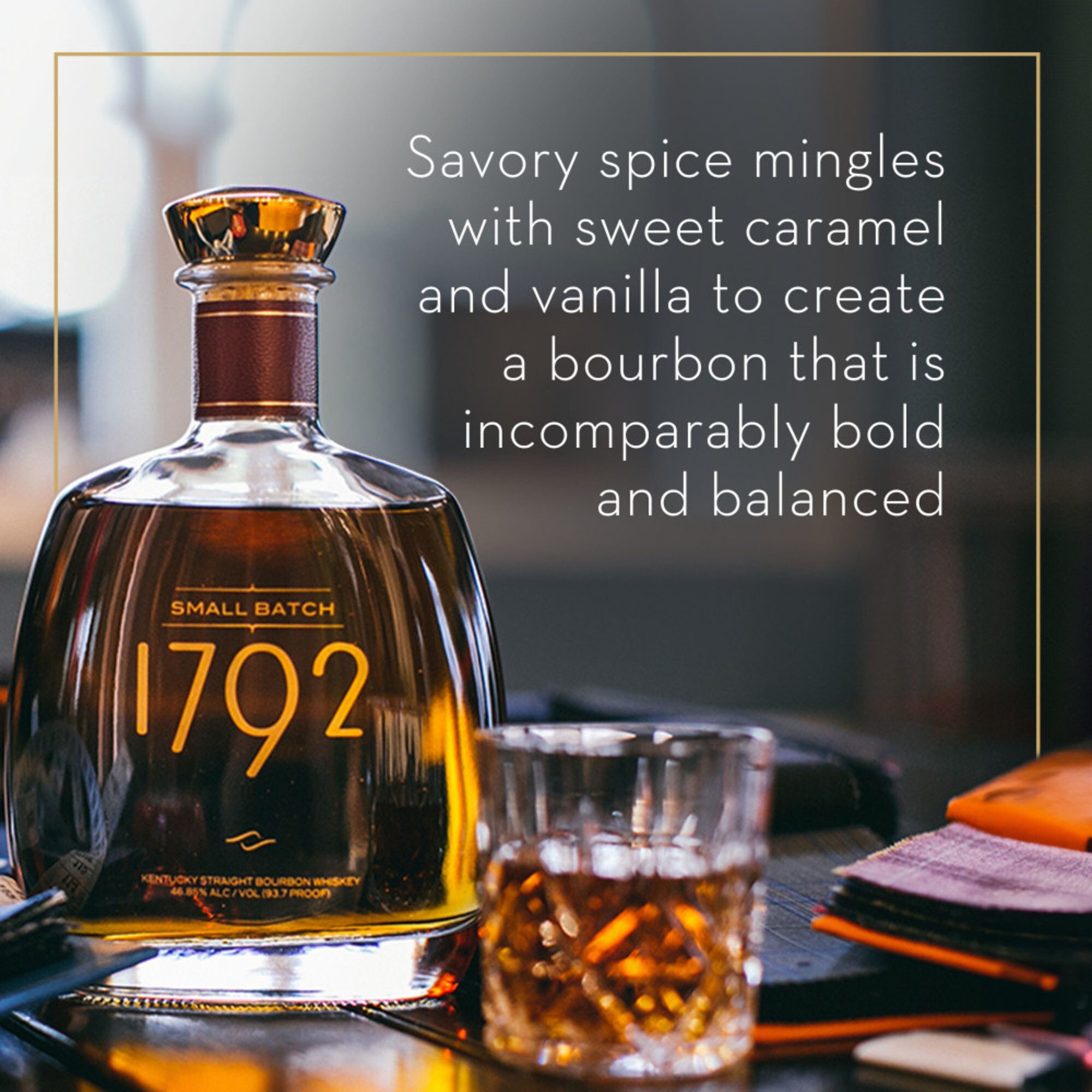 Elevating whiskey to new heights, 1792 Small Batch Kentucky Straight Bourbon Whiskey is an award-winning whiskey that is sophisticated and complex. 1792 bourbon is created at the oldest fully operating distillery in Bardstown, Kentucky, the heart of bourbon country. This distinctly different bourbon whiskey features an expressive and elegant flavor profile. Unmistakable spice notes mingle with sweet caramel and vanilla for a bourbon that's incomparably brash and bold yet smooth and balanced. The bourbon is made from 1792's signature high rye recipe aged in select barrels carefully chosen by our master distiller. This small batch whiskey is 93.7 proof. Enjoy 1792 bourbon whiskey on the rocks, neat, or in your favorite whiskey cocktails, such as an old fashioned or Manhattan. Raise a glass to raised expectations with 1792 Bourbon Whiskey.