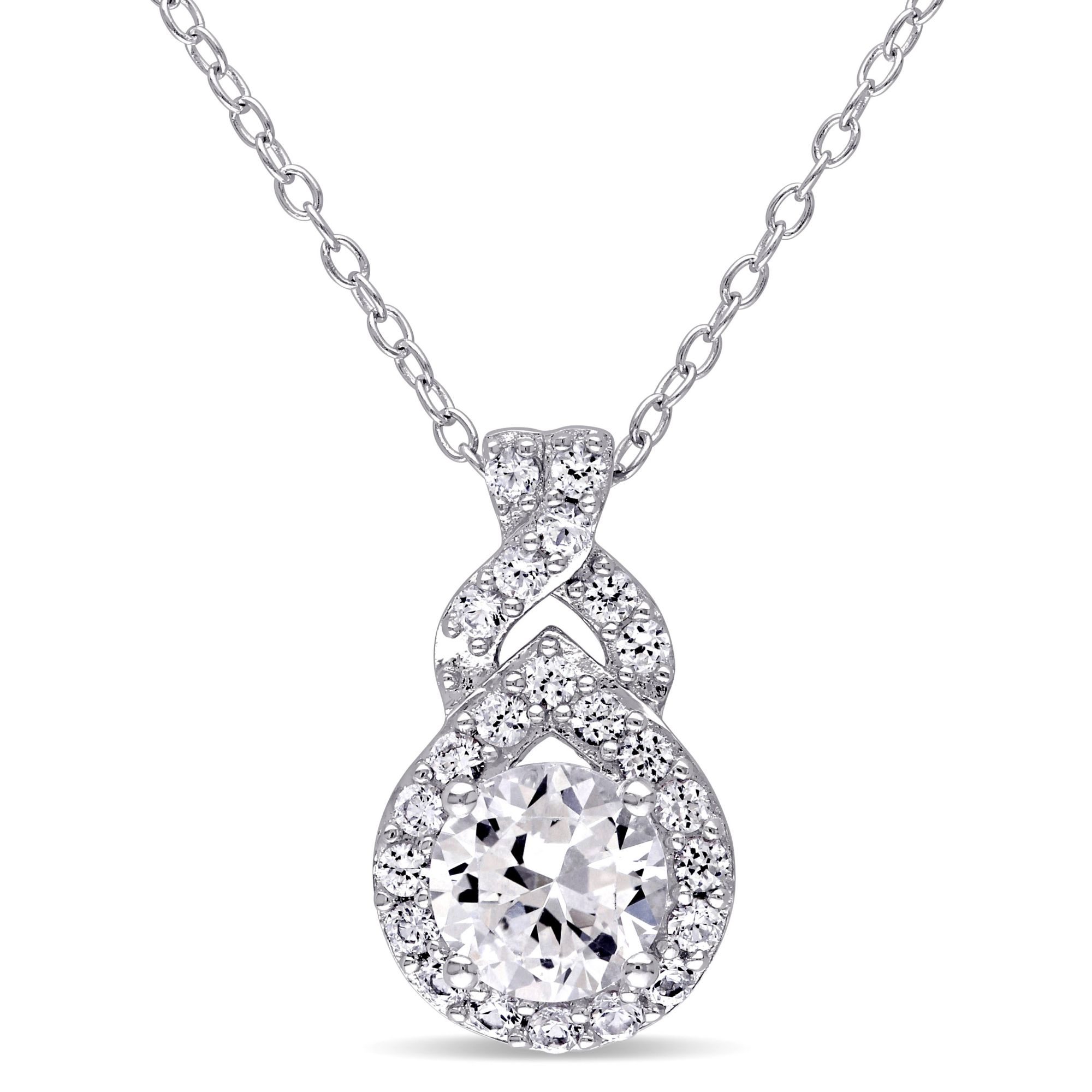 1.84 ct. t.w. Created White Sapphire Teardrop Halo Pendant in Sterling Silver