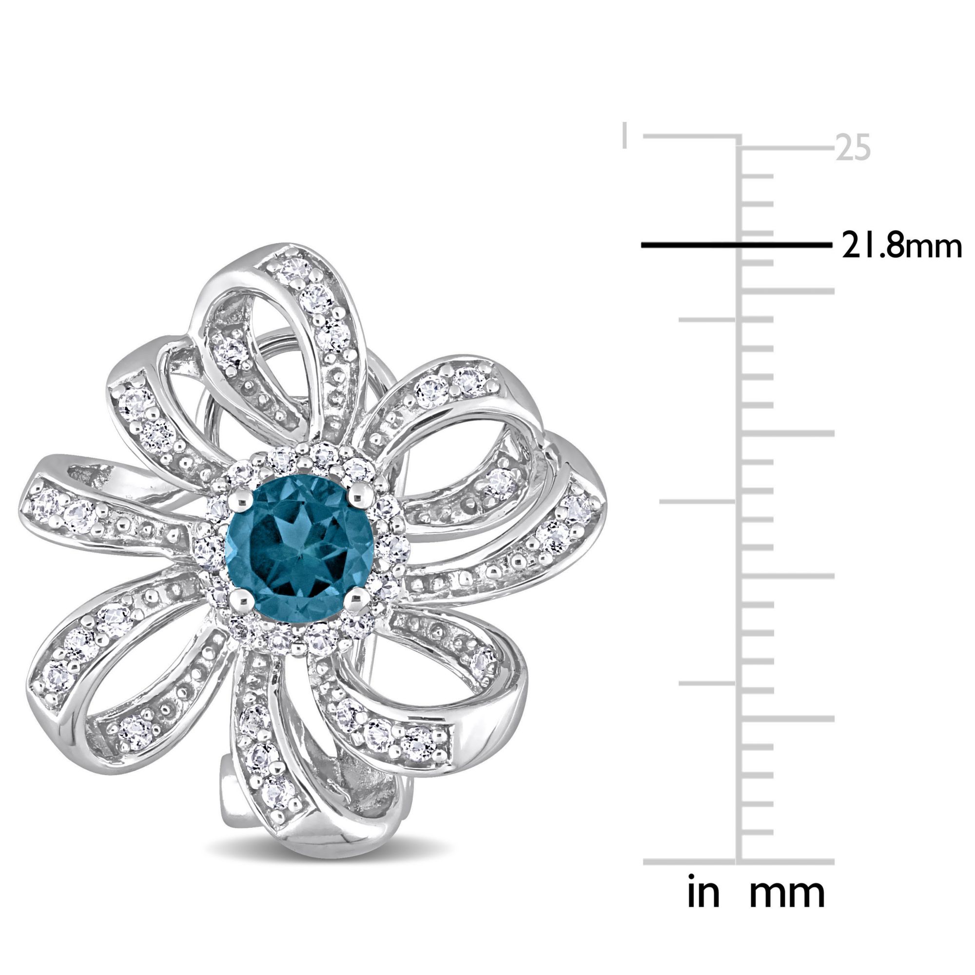 1.87 ct. t.g.w Blue and White Topaz Flower Earrings in Sterling Silver