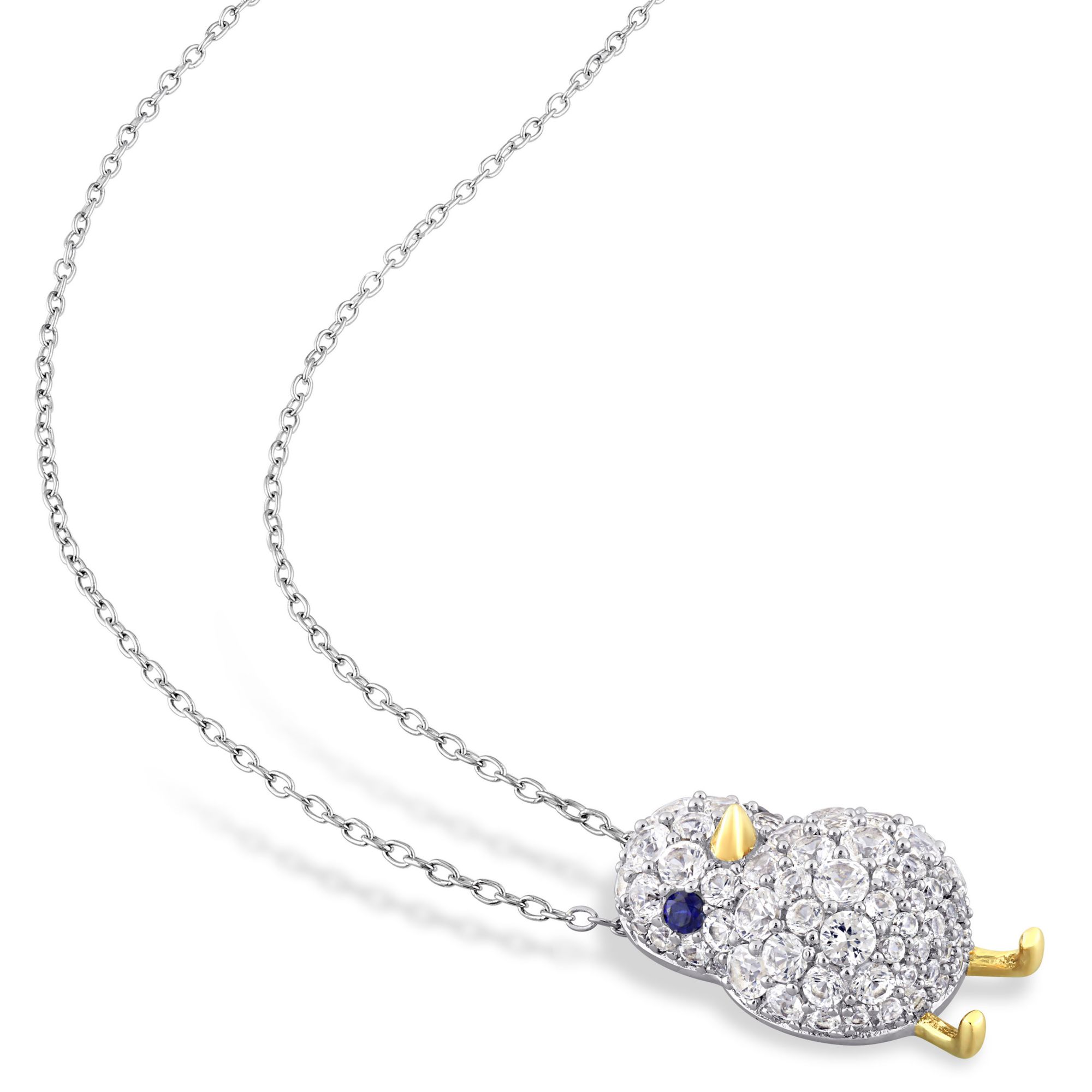 2 3/4 ct. t.w. Created Blue and White Sapphire Bird Cluster Necklace in White and Yellow Plated Sterling Silver
