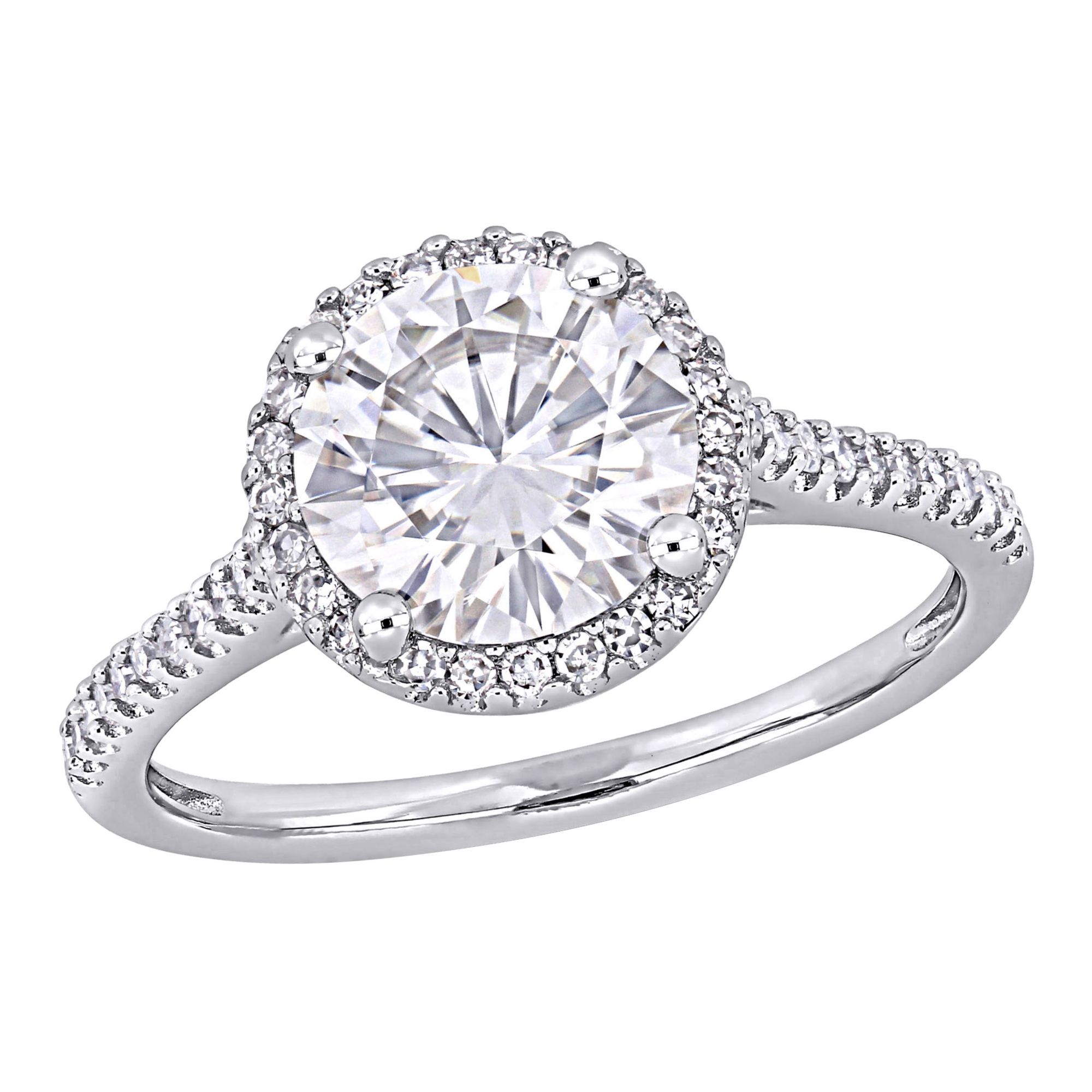 2 ct. DEW Created Moissanite and .25 ct. t.w. Diamond Halo Engagement Ring in 14k White Gold