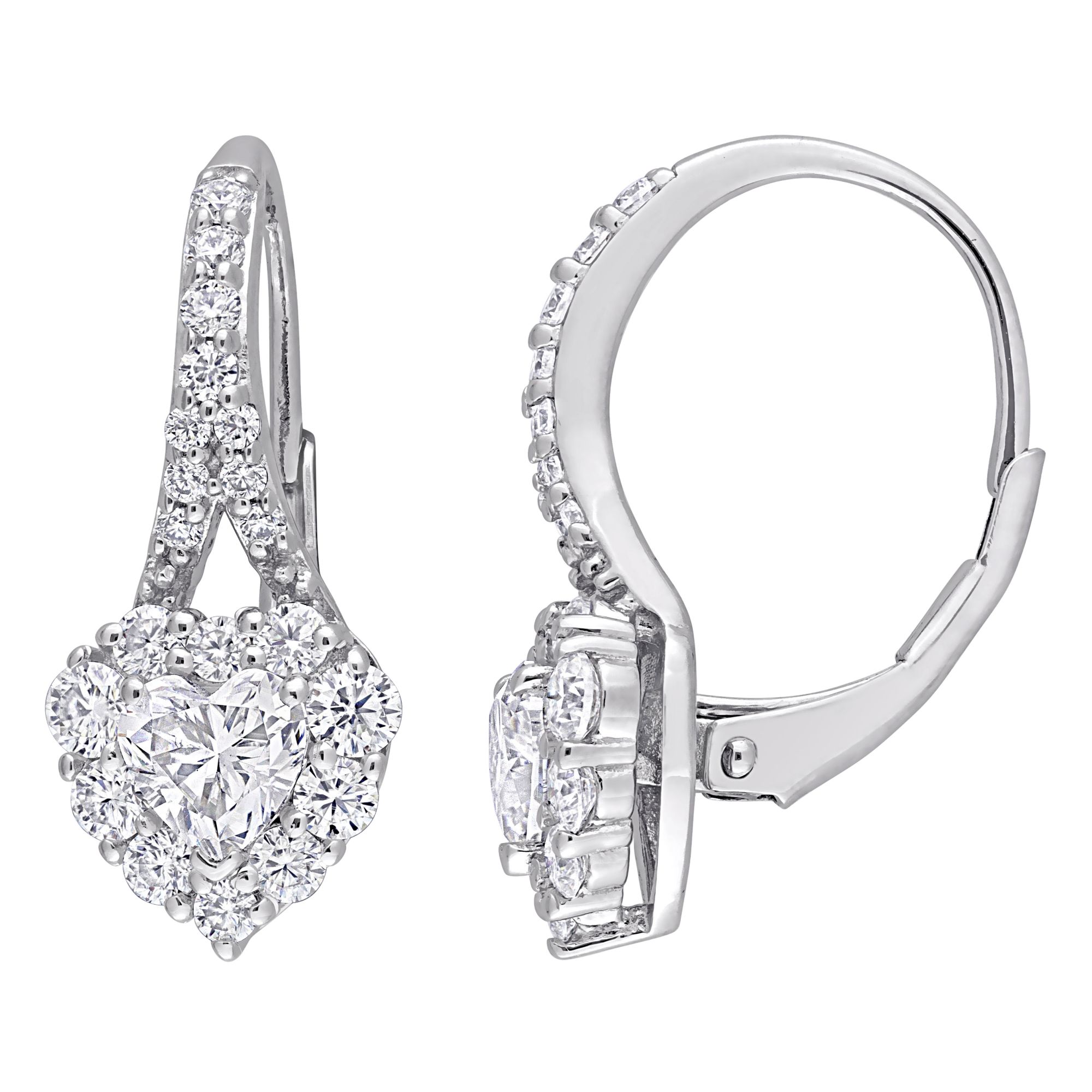 2 ct. DEW Created Moissanite Heart Halo Earrings in Sterling Silver