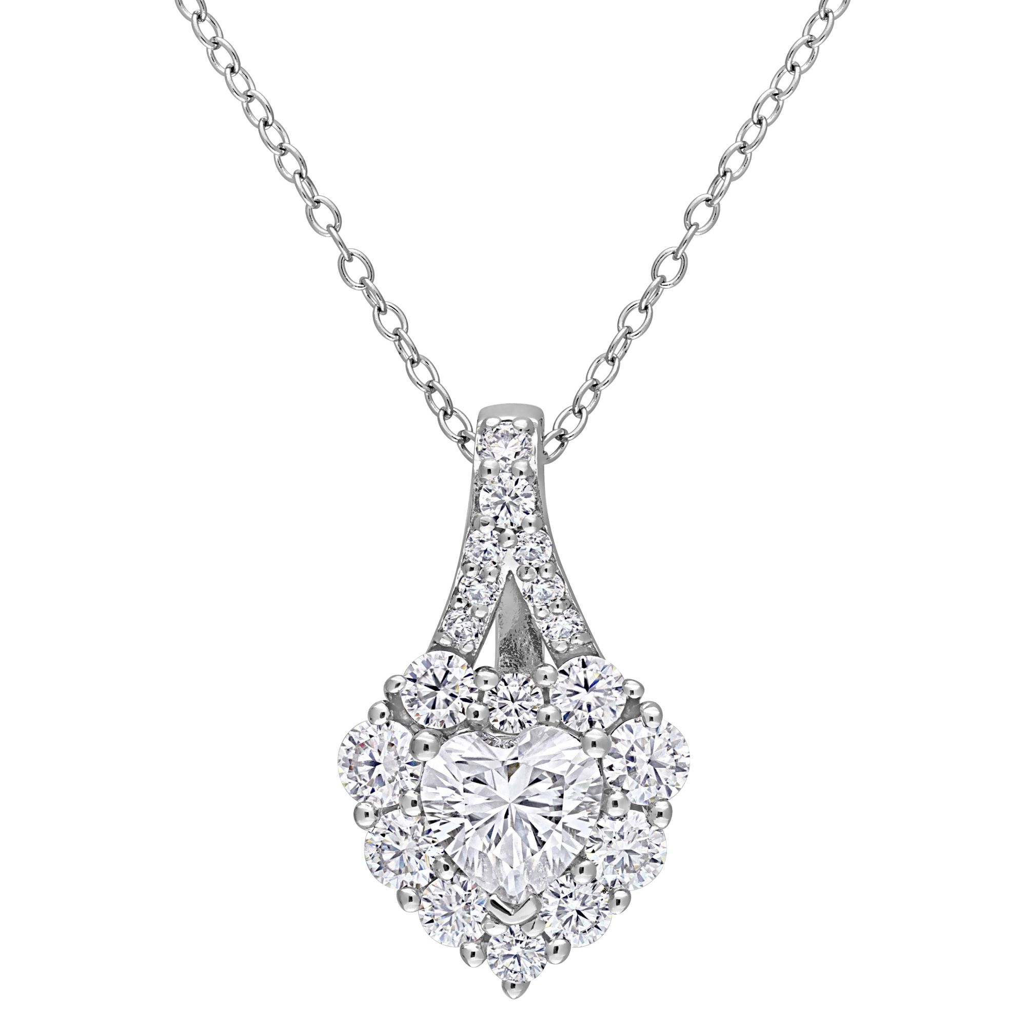 2 ct. DEW Created Moissanite Heart Halo Necklace in Sterling Silver