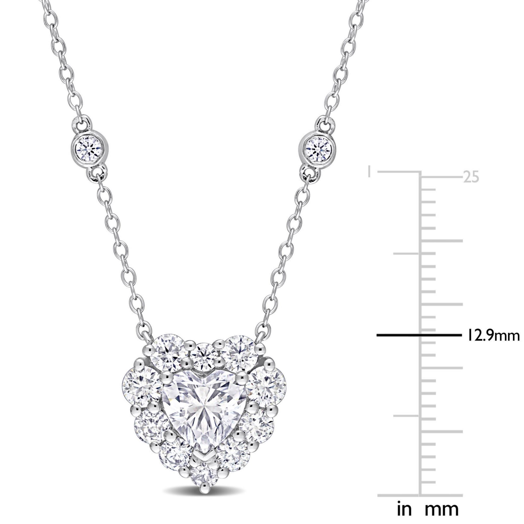 2 ct. DEW Moissanite Heart Halo Station Necklace in Sterling Silver