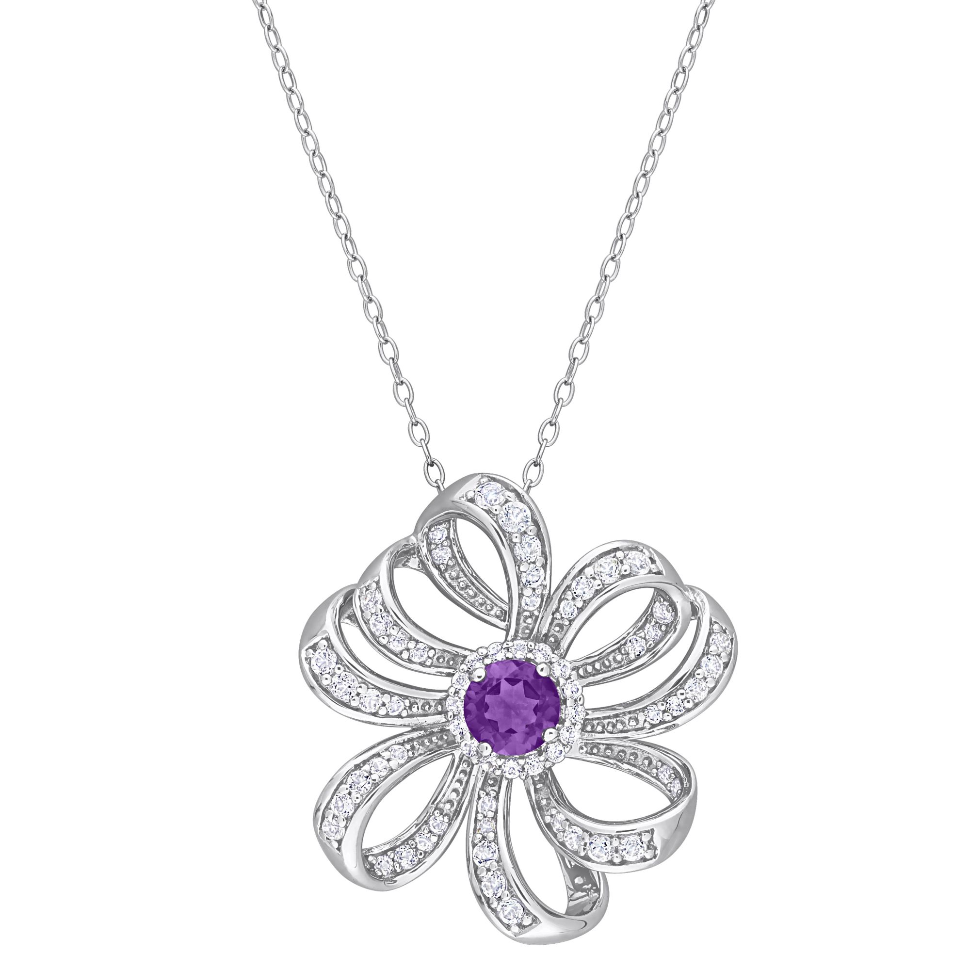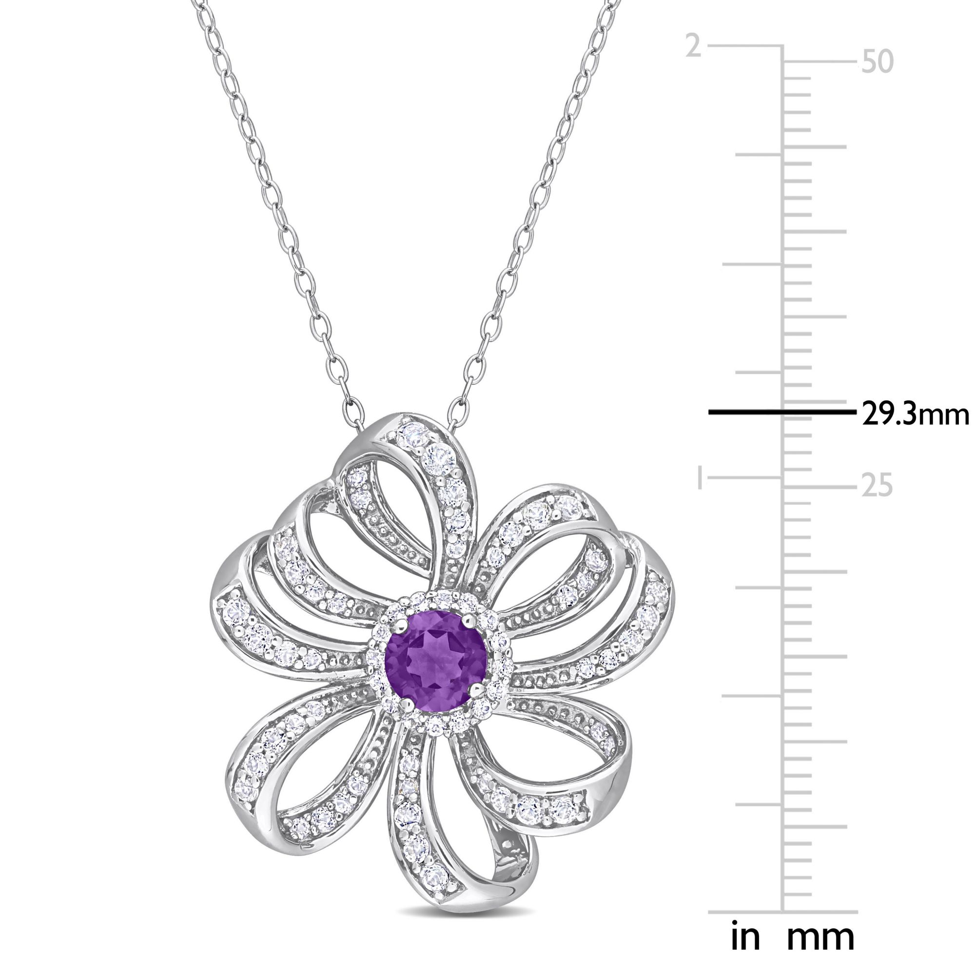 2 ct. t.g.w Amethyst and White Topaz Flower Necklace in Sterling Silver