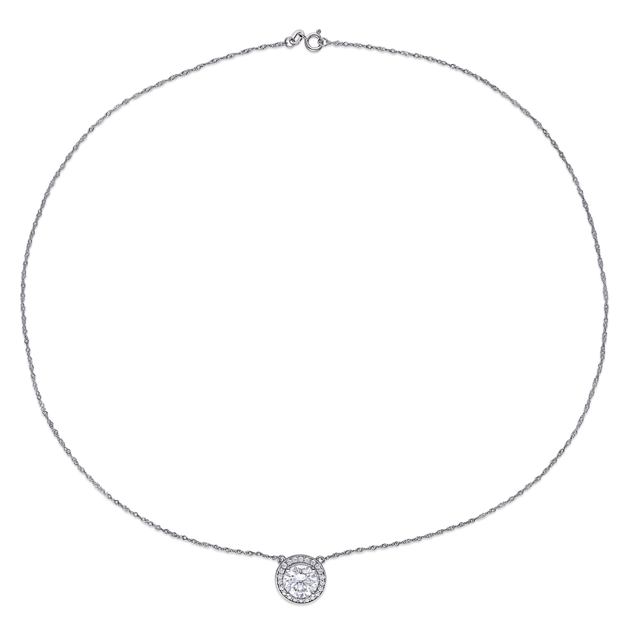 2 ct. t.g.w. Created Moissanite Halo Necklace in 10k White Gold