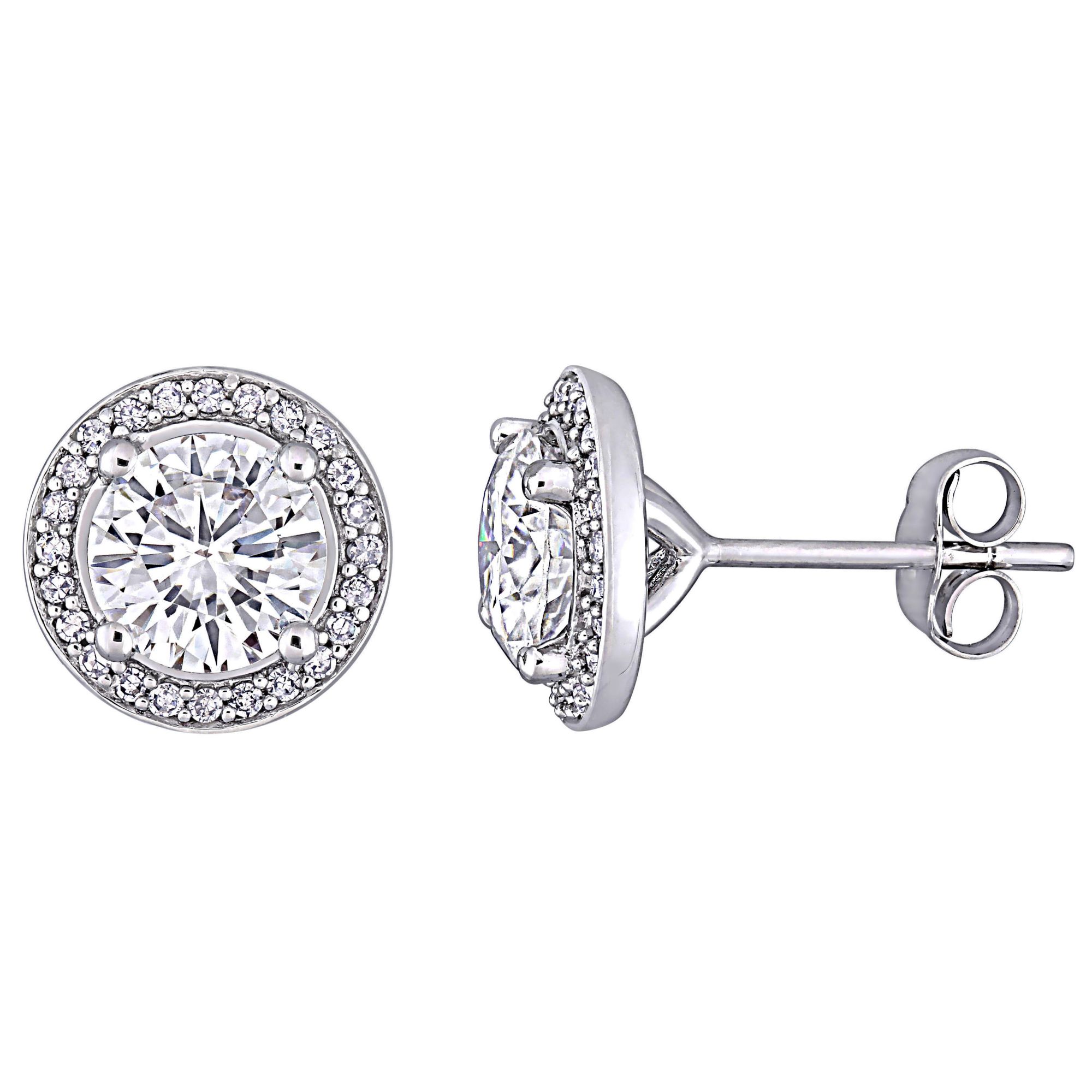 2 ct. t.g.w. Moissanite and 1/5 ct. TW Diamond Halo Stud Earrings in 14k White Gold