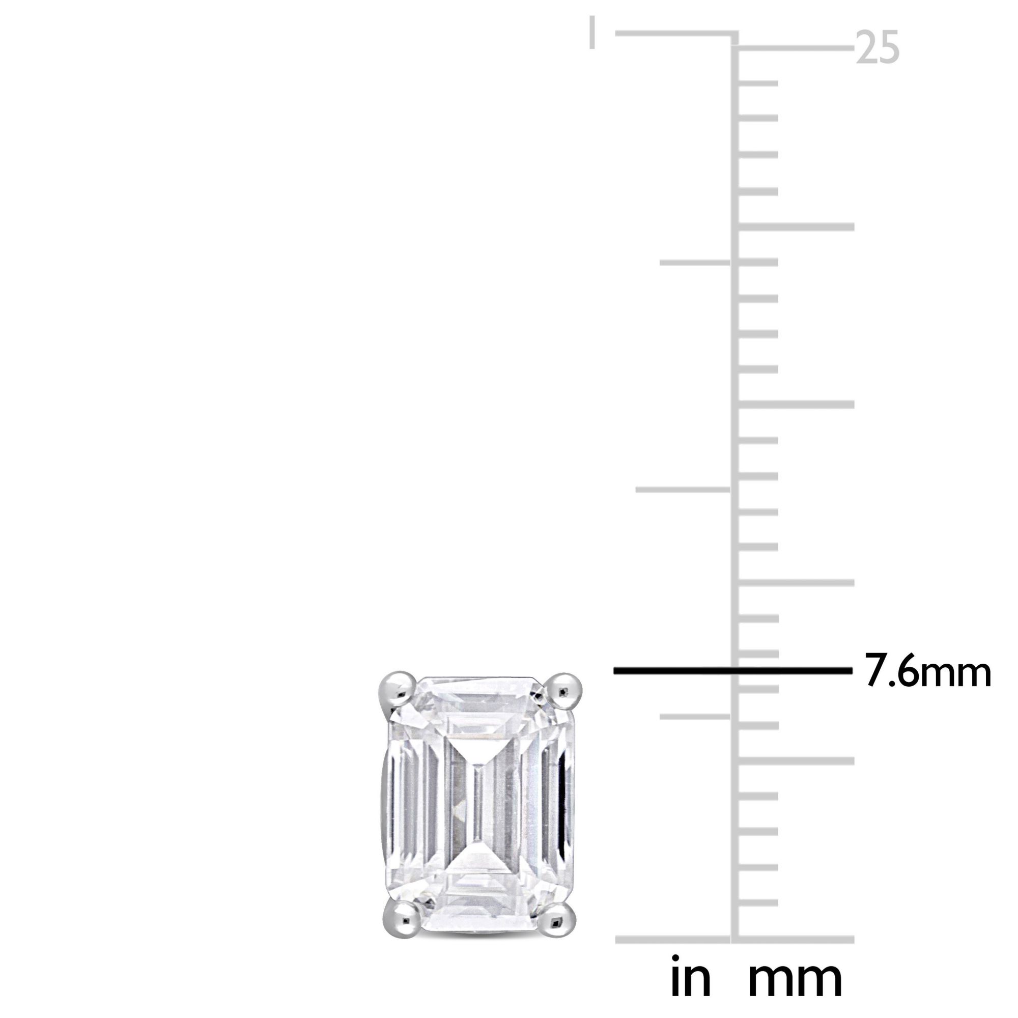 2 ct. t.g.w. Moissanite Emerald Cut Stud Earrings with Heart Detail in Sterling Silver