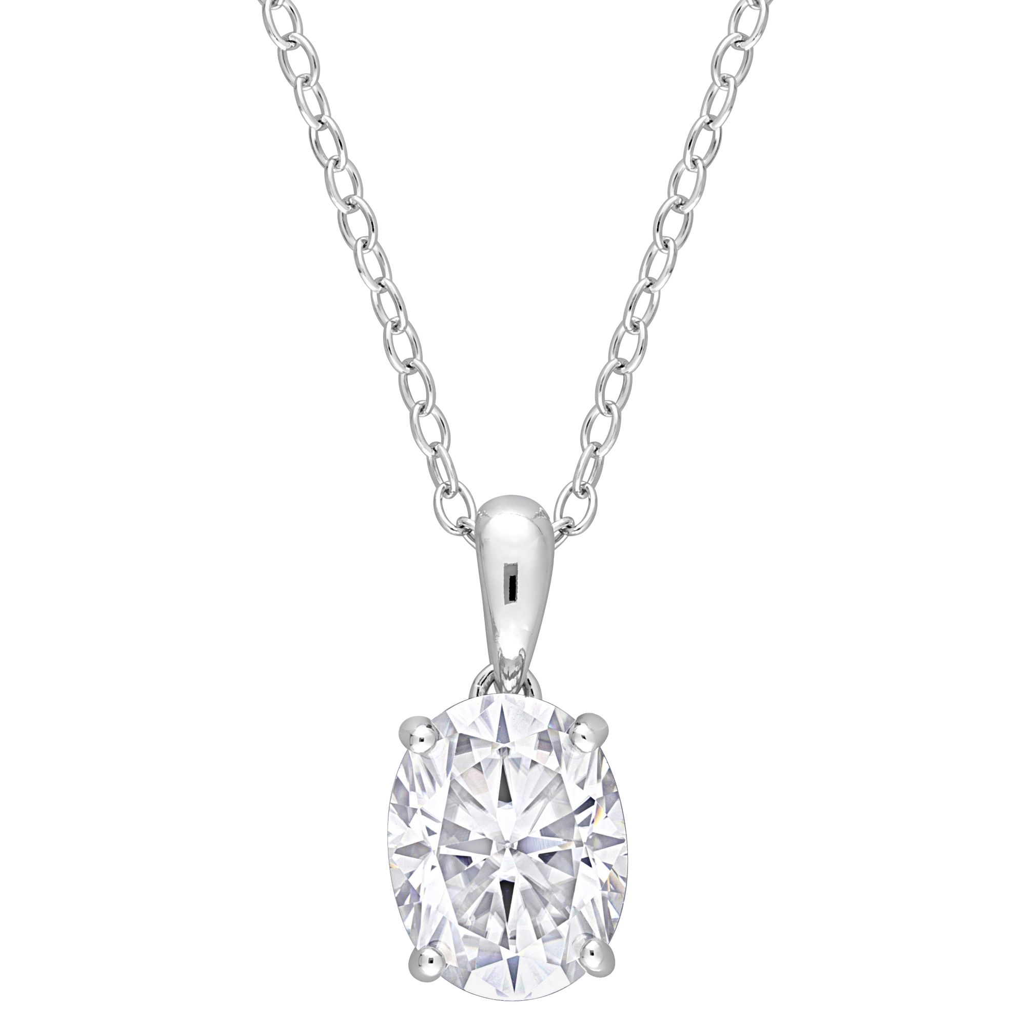 (22 Items)2 ct. t.g.w. Moissanite Oval Solitaire Heart Design Pendant with Chain in Sterling Silver
